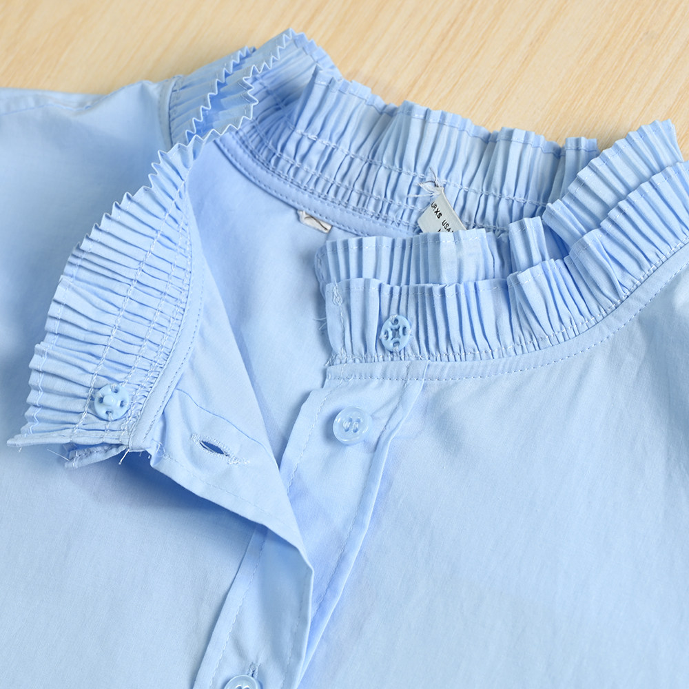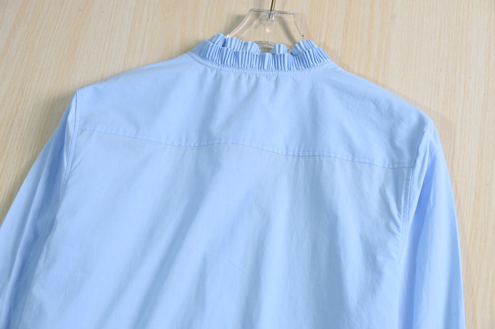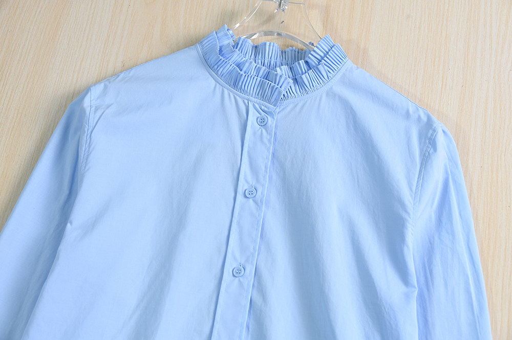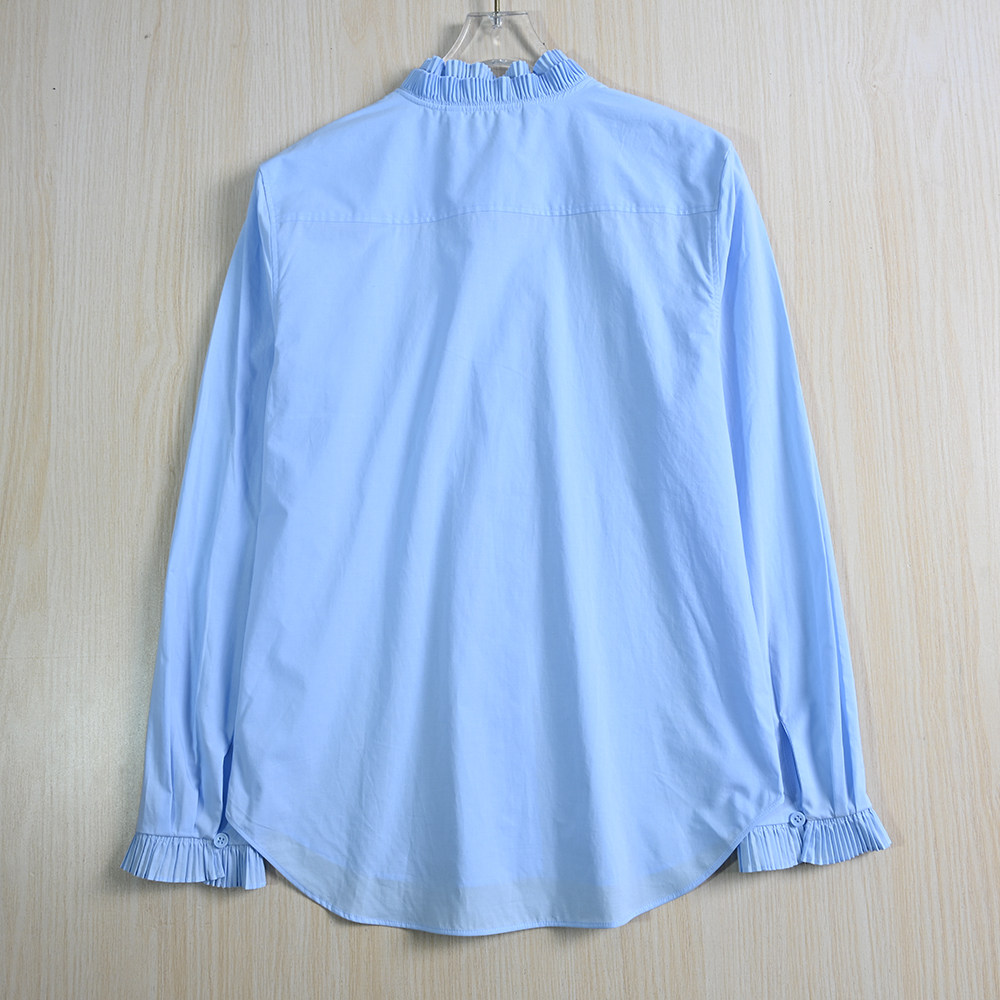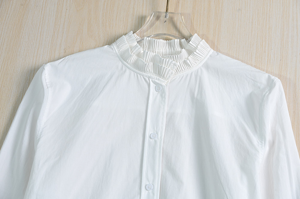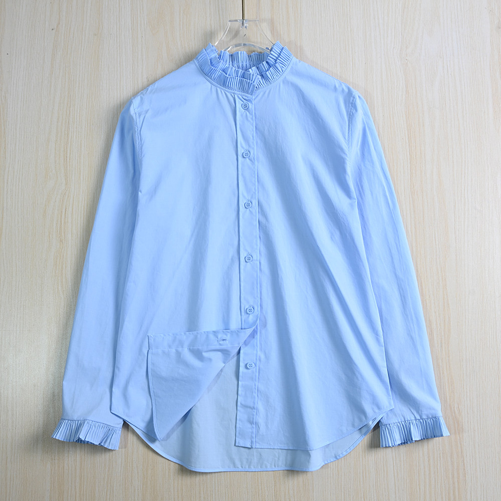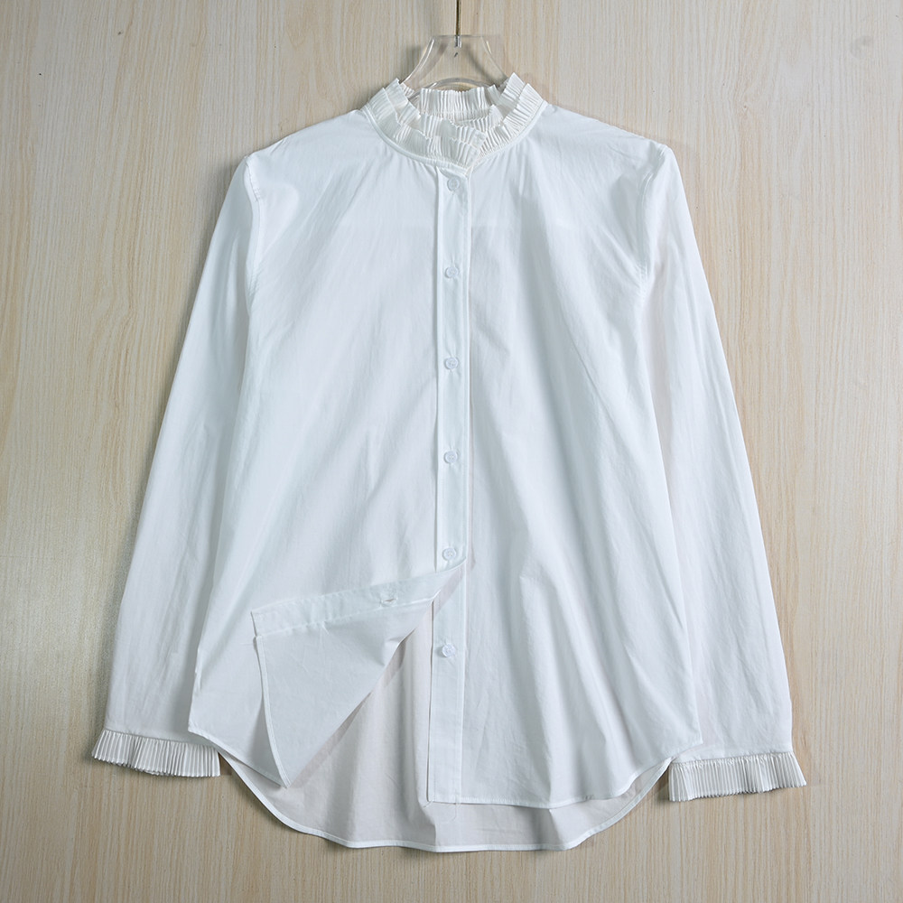 Женская одежда Siqi 253/31 Испанский одно тонкий хлопковой аккордеон плиссированный стойский воротник повседневная рубашка с длинным рукавом