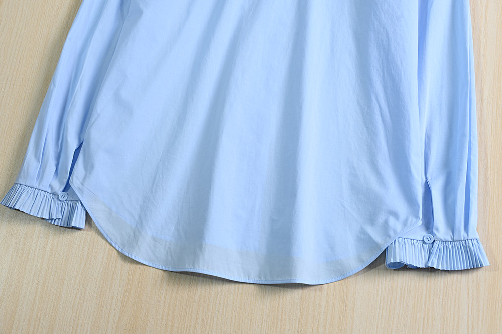 Верхняя часть тела очень позитивна, с длинными рукавами, а манжеты также имеют деревянный дизайн серьги с аккордеонными складками. Кнопки закрыты и слегка закрыты. Рукава примерно одинаковой, поэтому они не слишком длинные.