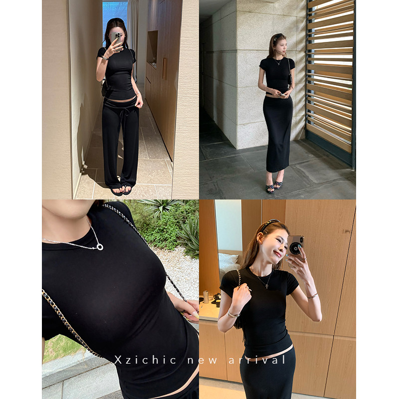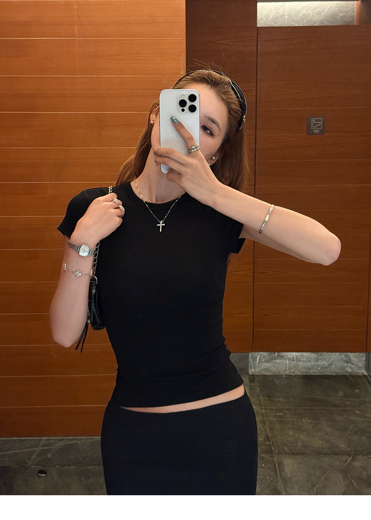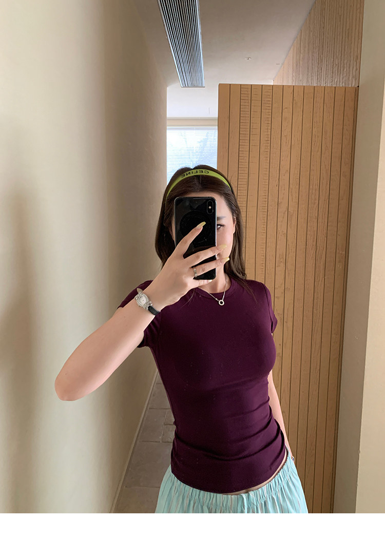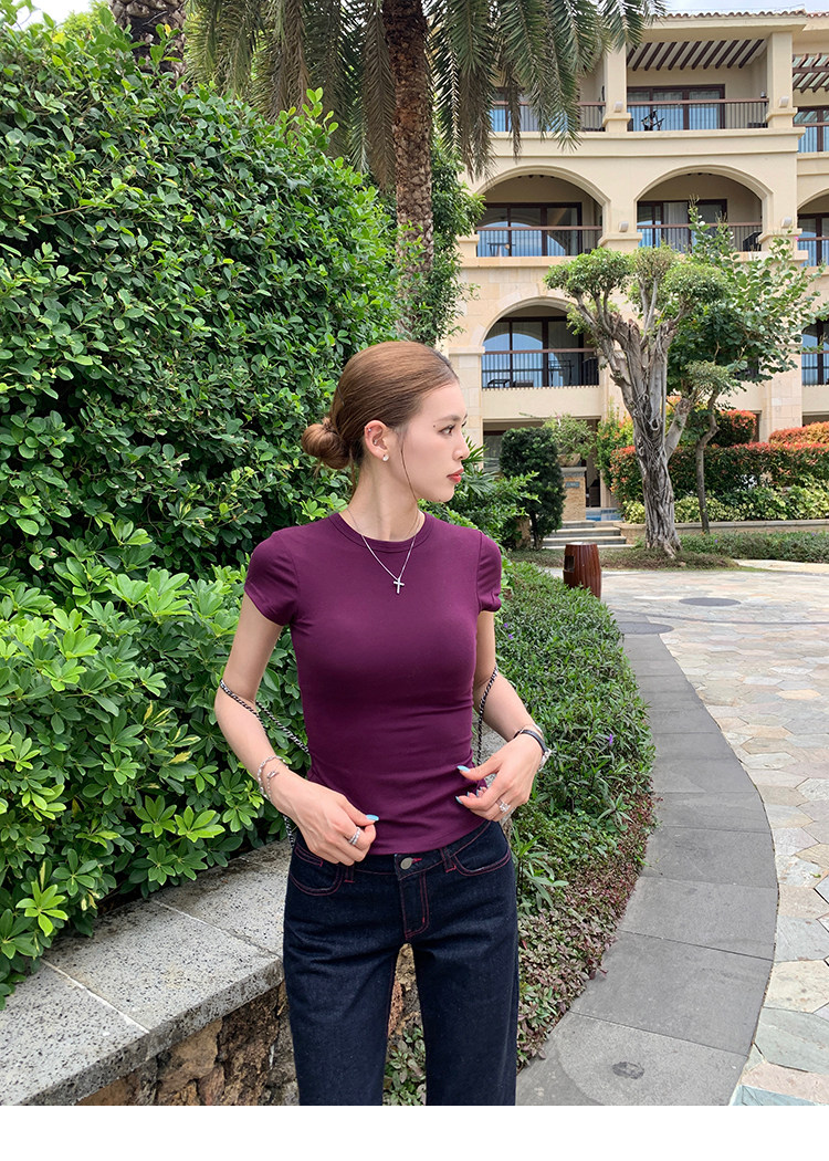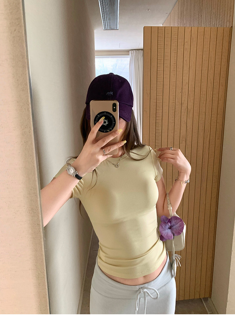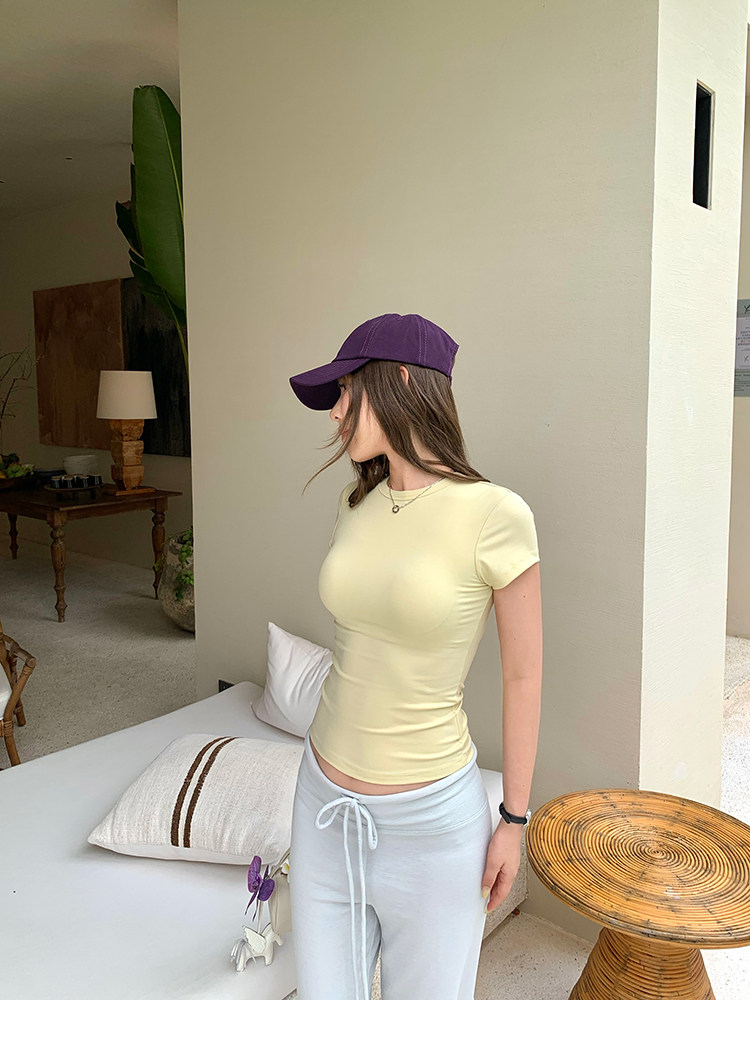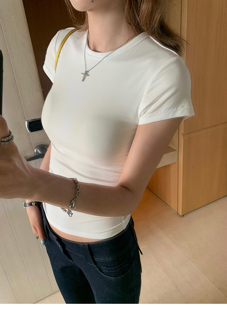 Xzichic Футболка с коротким рукавом, базовые приятные телу летние вставки в бюстгальтер, облегающий крой
