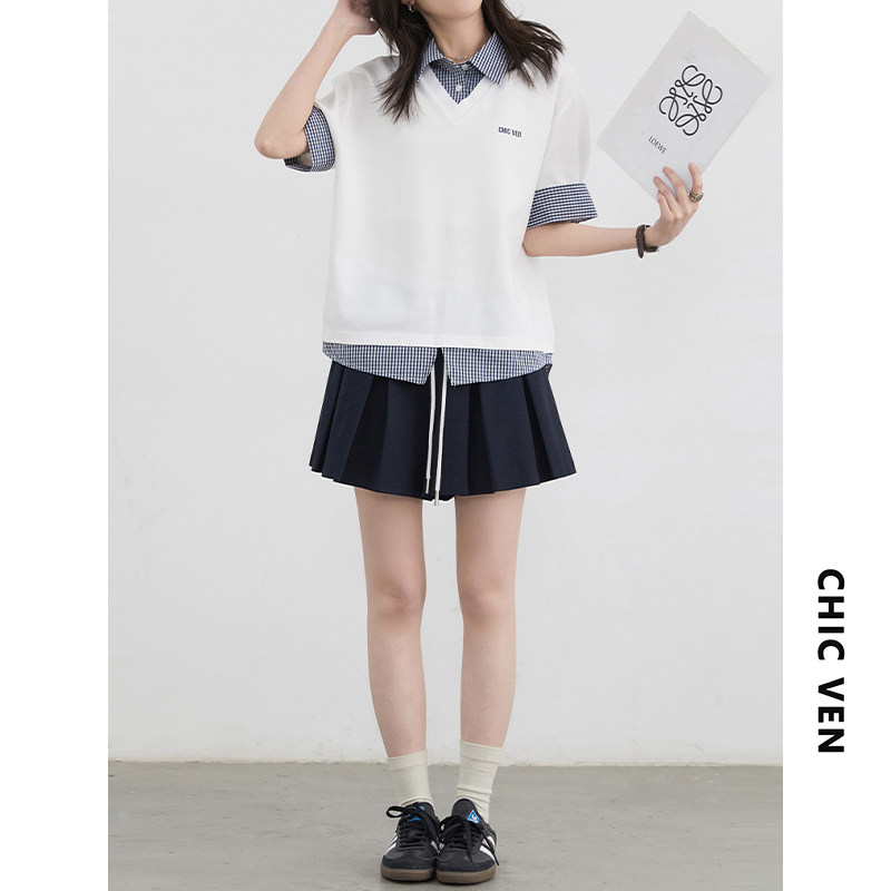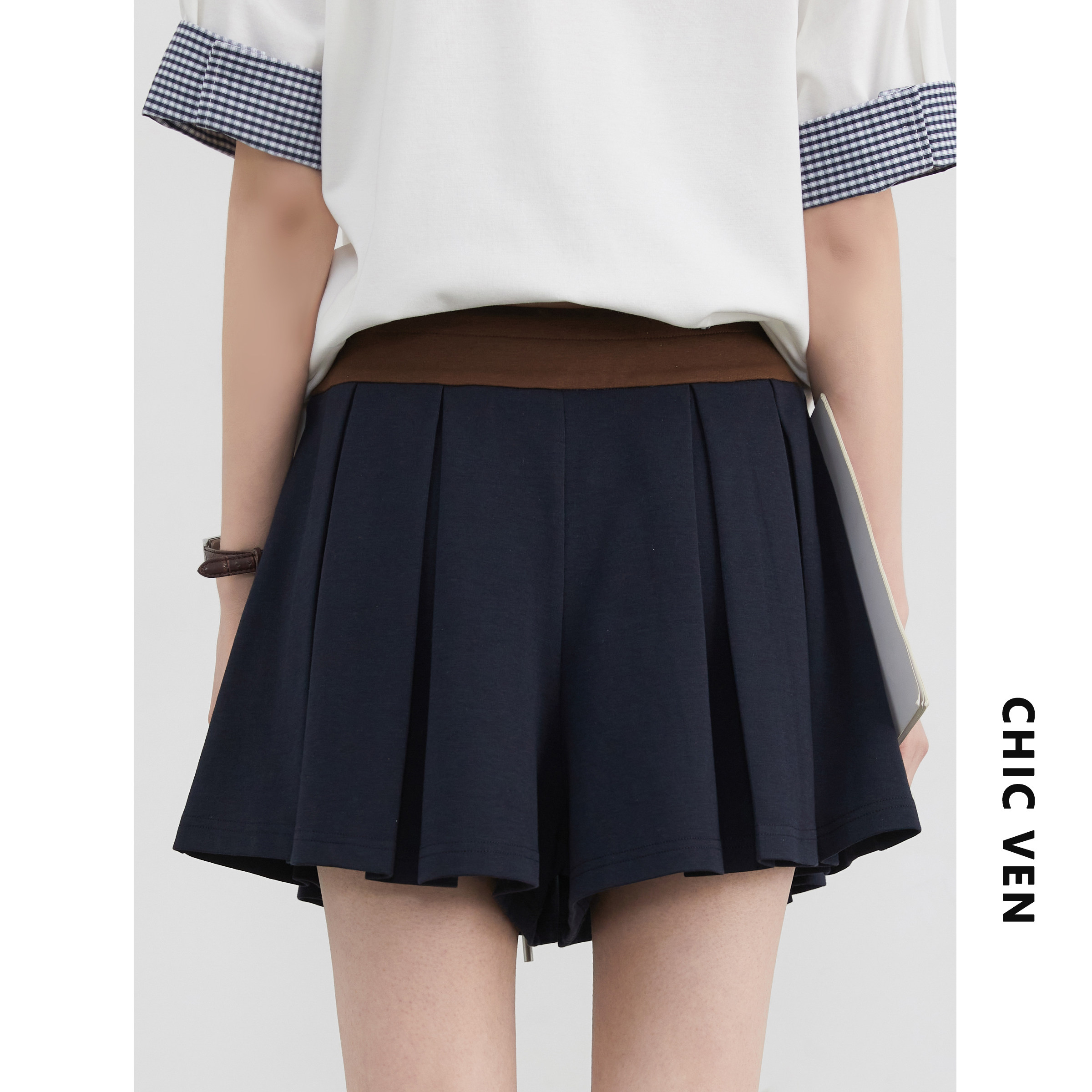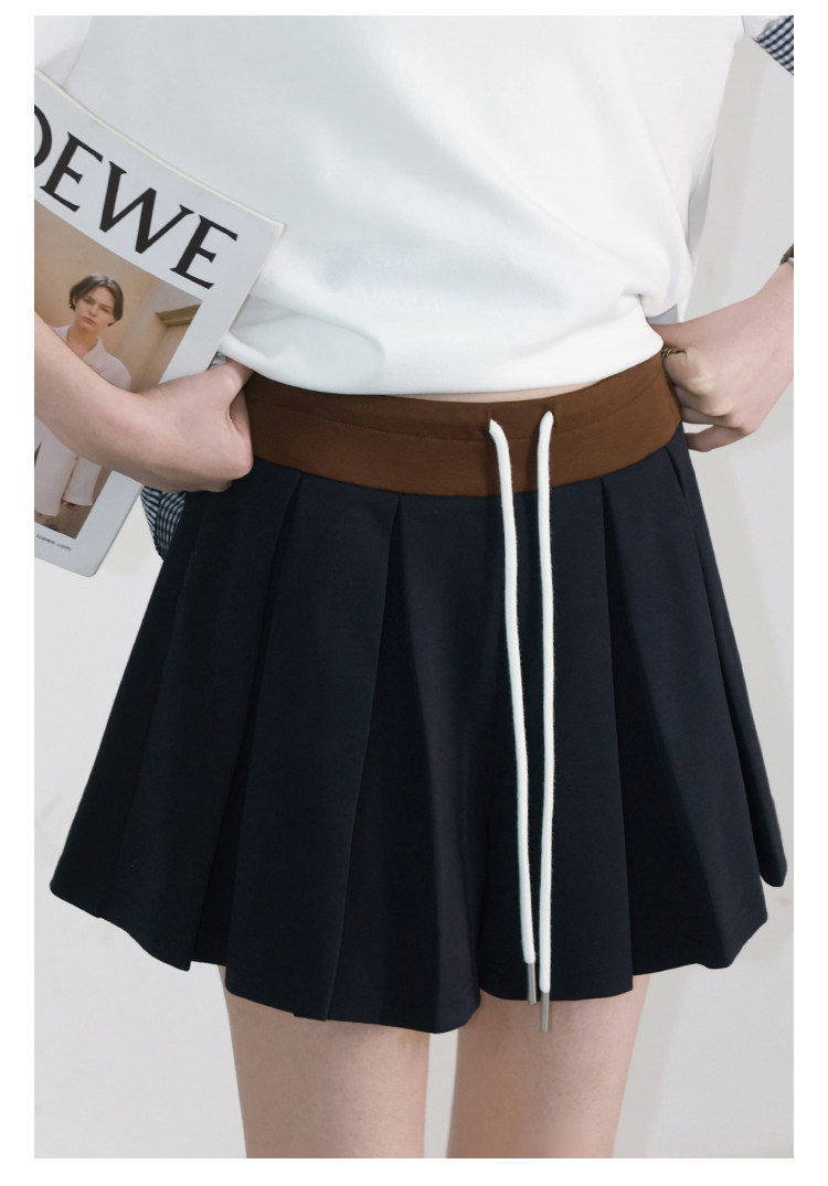 Летние шорты для отдыха, юбка в складку, высокая талия, на шнурках