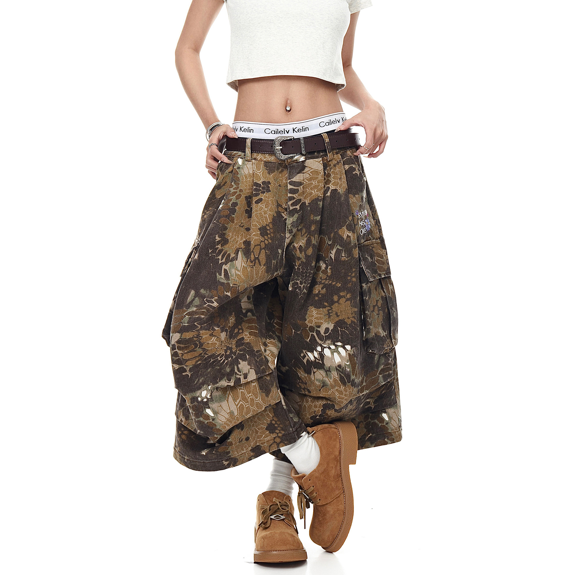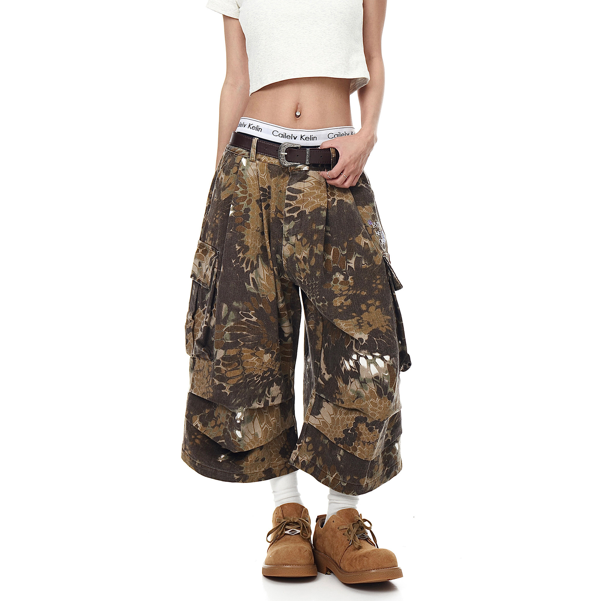 Ретро камуфляжные шорты подходит для мужчин и женщин, штаны, в американском стиле, свободный крой