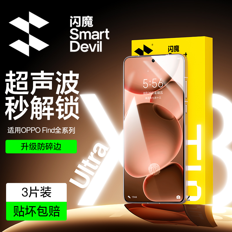 闪魔 Применимо к Oppoffindx8ultra смягченной пленки Findx8s+Mobile Film x8s Полное освещение в полном экране новая защитная пленка Oppo Ultrasonic Finger-отпечатки разблокировки x8pro изогнутая поверхность U анти-синий свет