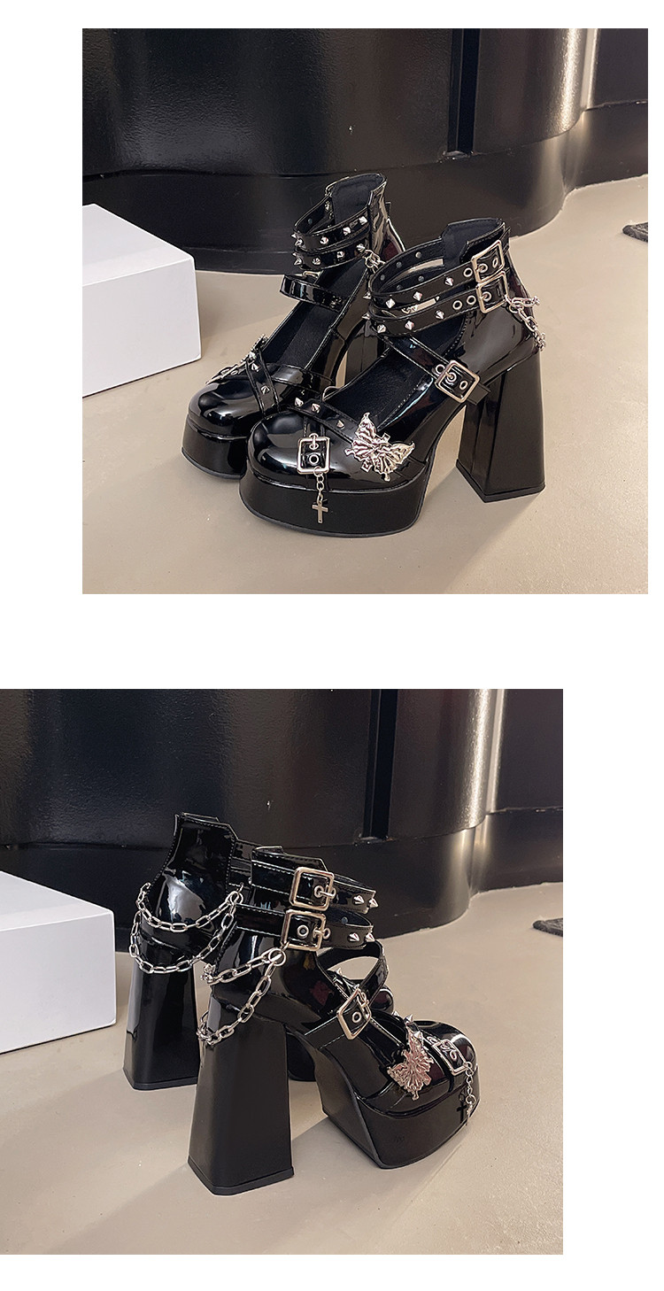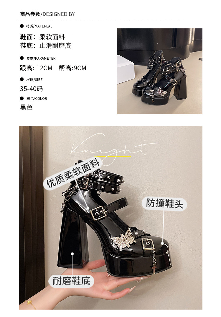 Сладкие и классные туфли на высоком каблуке в стиле Лолиты с темным бантом, кожаные туфли Мэри Джейн на толстой подошве в стиле панк, на маленьком толстом каблуке с мелким ртом
