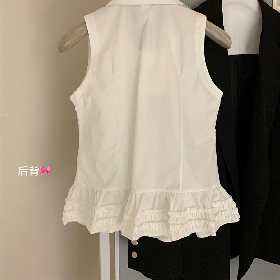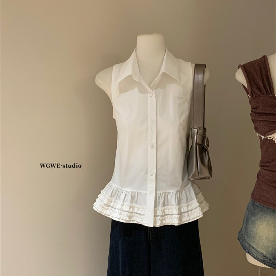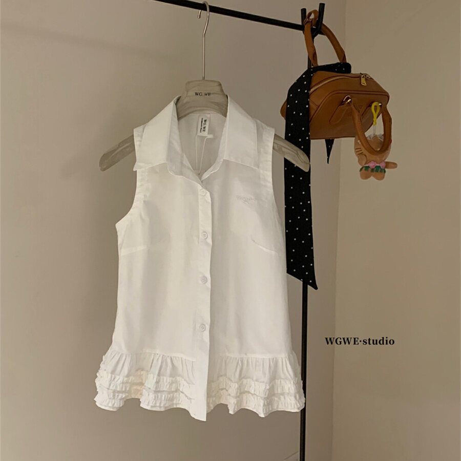 WGWE2025 летняя и корейская версия, универсальная милая рубашка без рукавов с рюшами, женская рубашка для похудения, универсальный модный топ