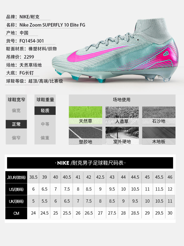 NIKE Мужские футбольные бутсы Nike Mercurial 16 Super High-End FG с длинными шипами, супертоп из натуральной травы FQ1454-301