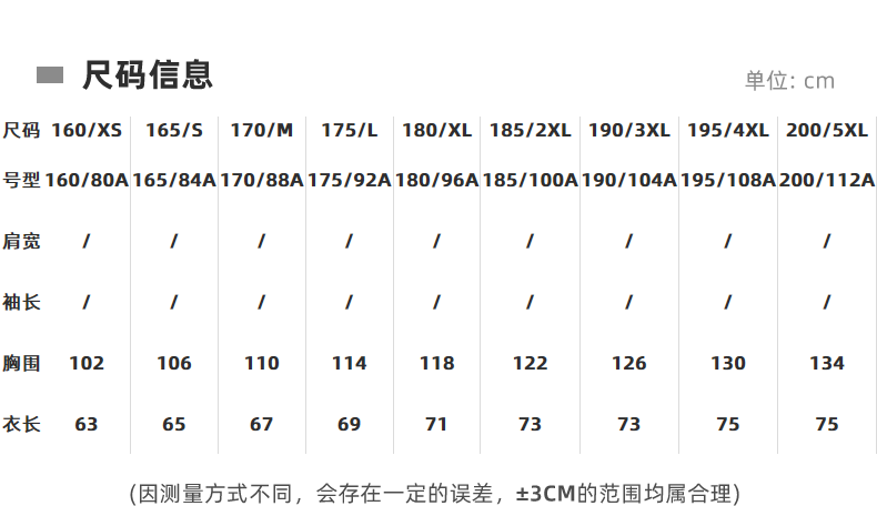 | Размер: | 160/XS, 165/S, 170/M, 175/L, 180/XL, 185/2XL, 190/3XL, 195/4XL, 200/5XL |