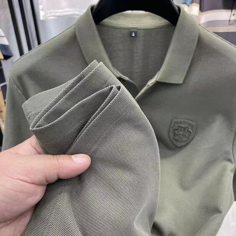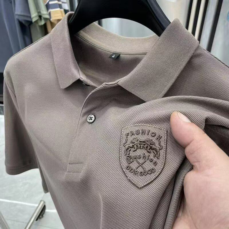 Летняя дышащая футболка polo, короткий рукав, с вышивкой, высокий воротник
