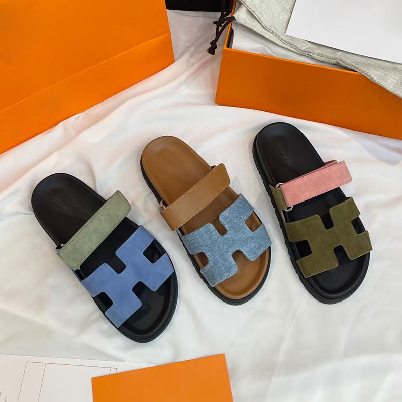 Летние пляжные универсальные тапочки на липучке, из натуральной кожи, для влюбленных