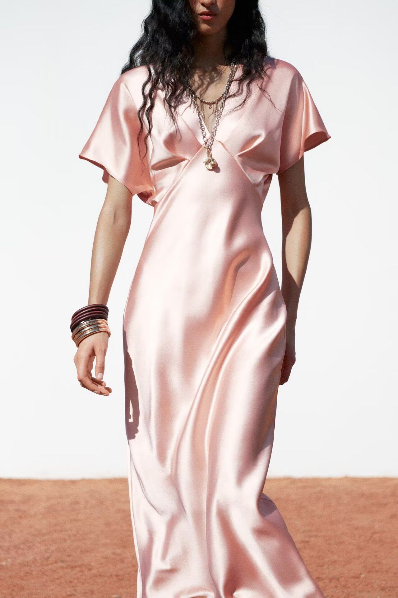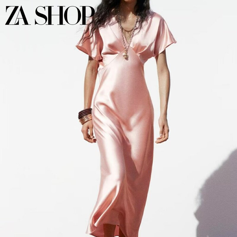 Летняя приталенная длинная юбка, платье, яркий броский стиль, короткий рукав, V-образный вырез