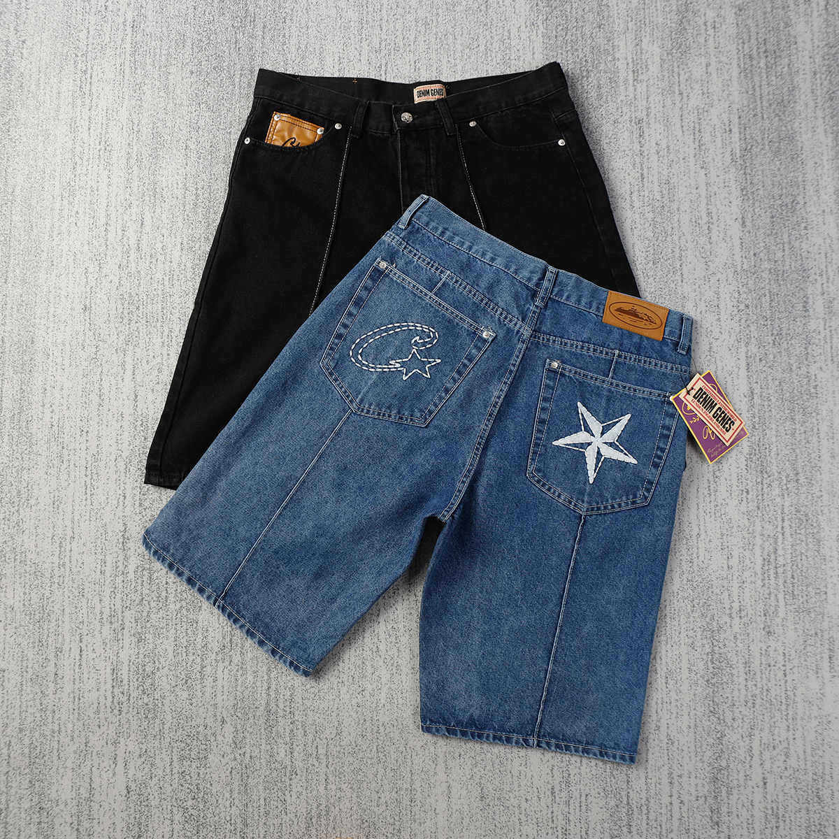 Джинсовая юбка, летние шорты, штаны, с вышивкой, оверсайз
