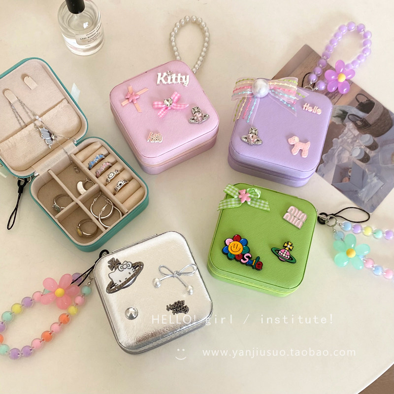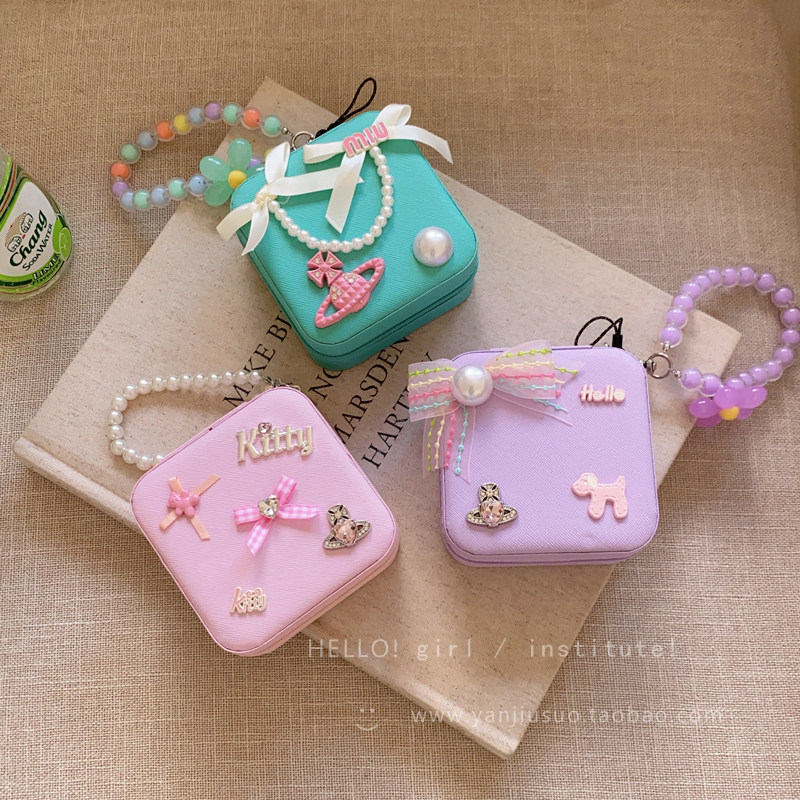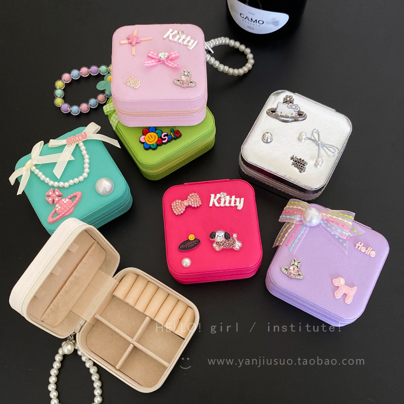 Портативная коробка для хранения с бантиком для выхода на улицу, кольцо, серьги, ожерелье, система хранения, коробочка для хранения