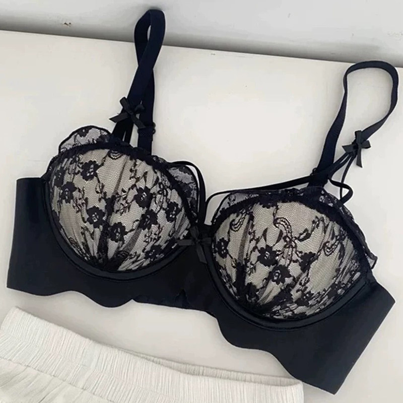 Сексуальное нижнее белье, бюстгальтер пуш-ап, поддерживающий бюстгальтер без косточек, черный бюстгалтер