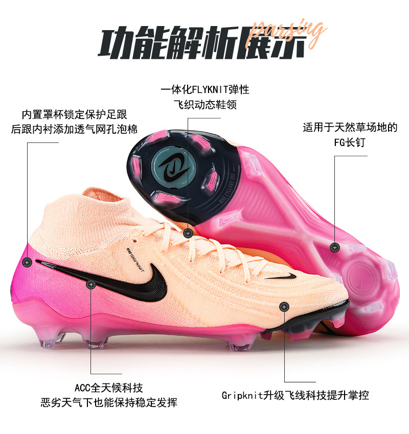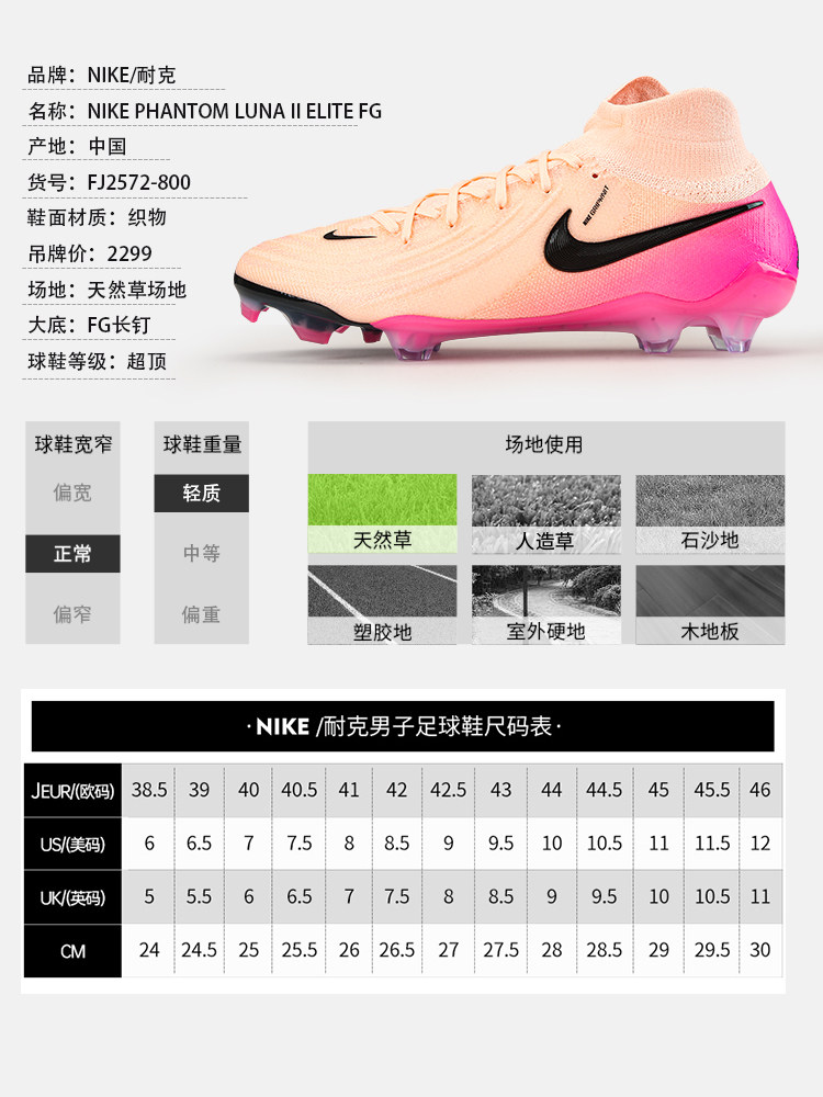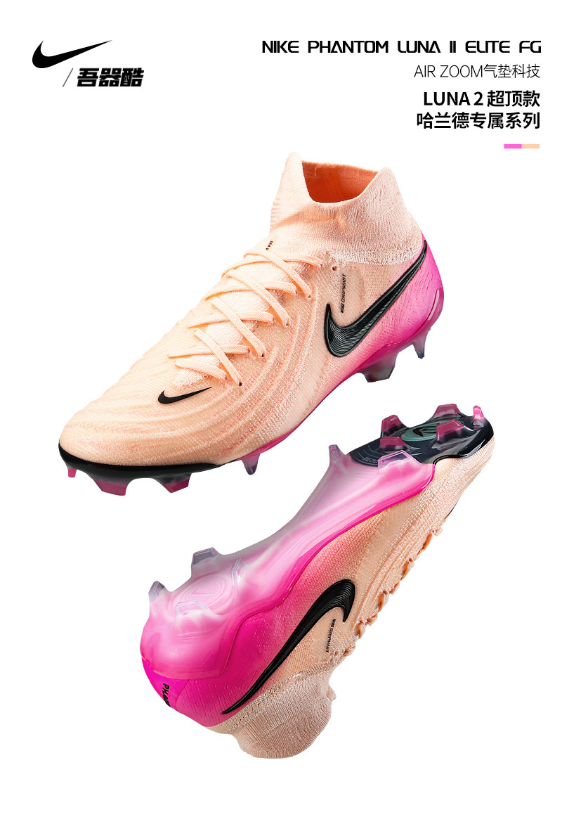 NIKE Мужские футбольные бутсы Nike Phantom Luna2 высокого класса FG с длинными шипами и высоким берцем FJ2572-800