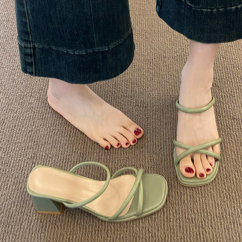 Летние тапочки, обувь, летняя универсальная подходит с юбкой, слайдеры на высоком каблуке, изысканный стиль