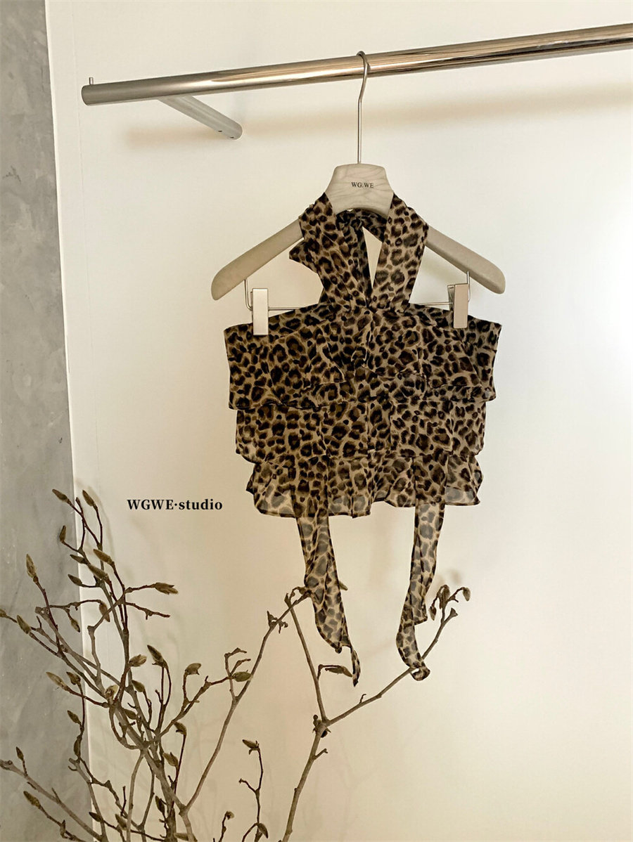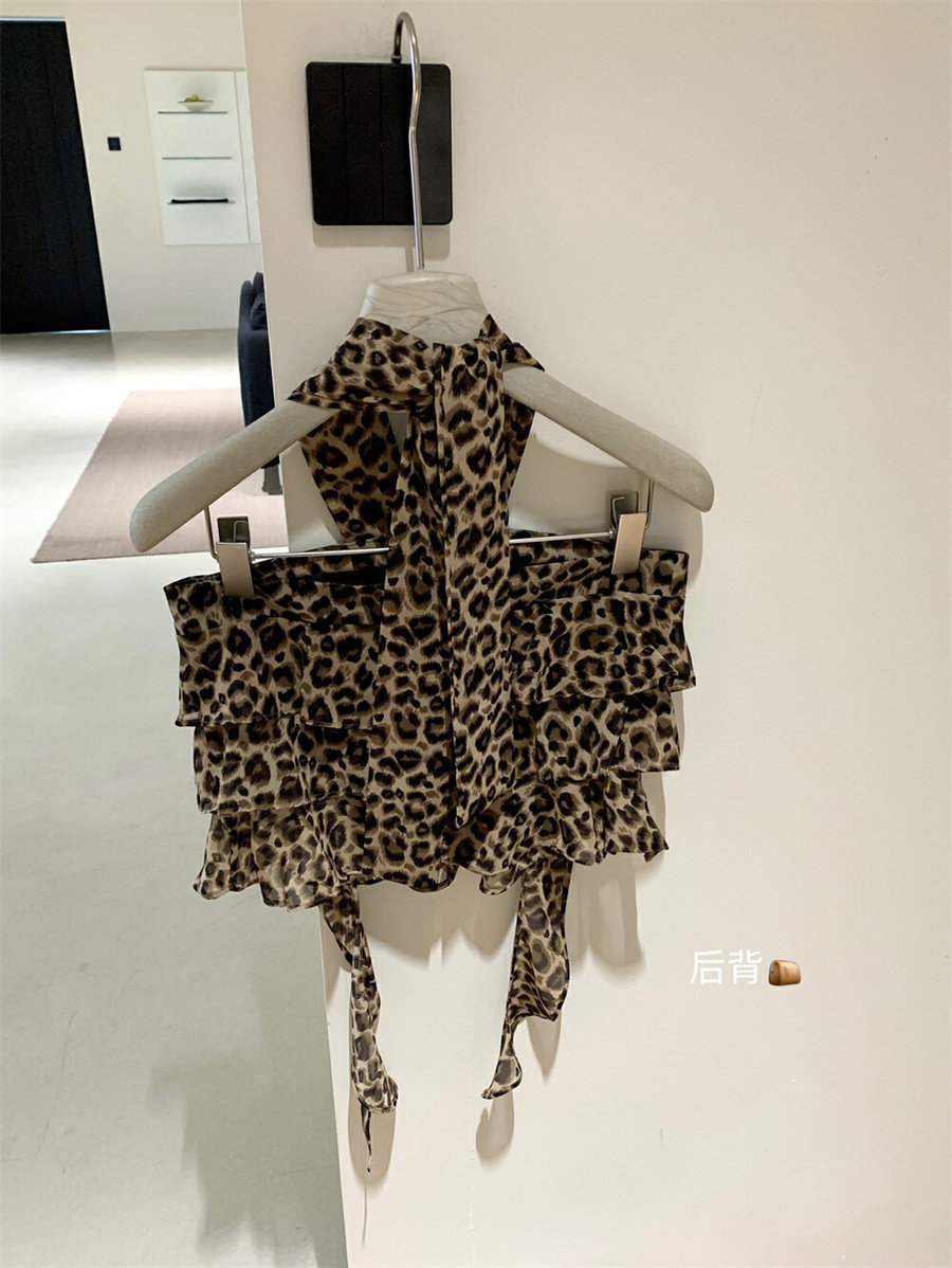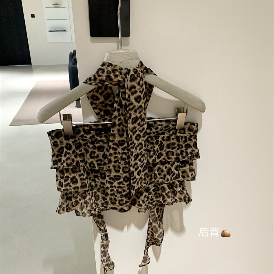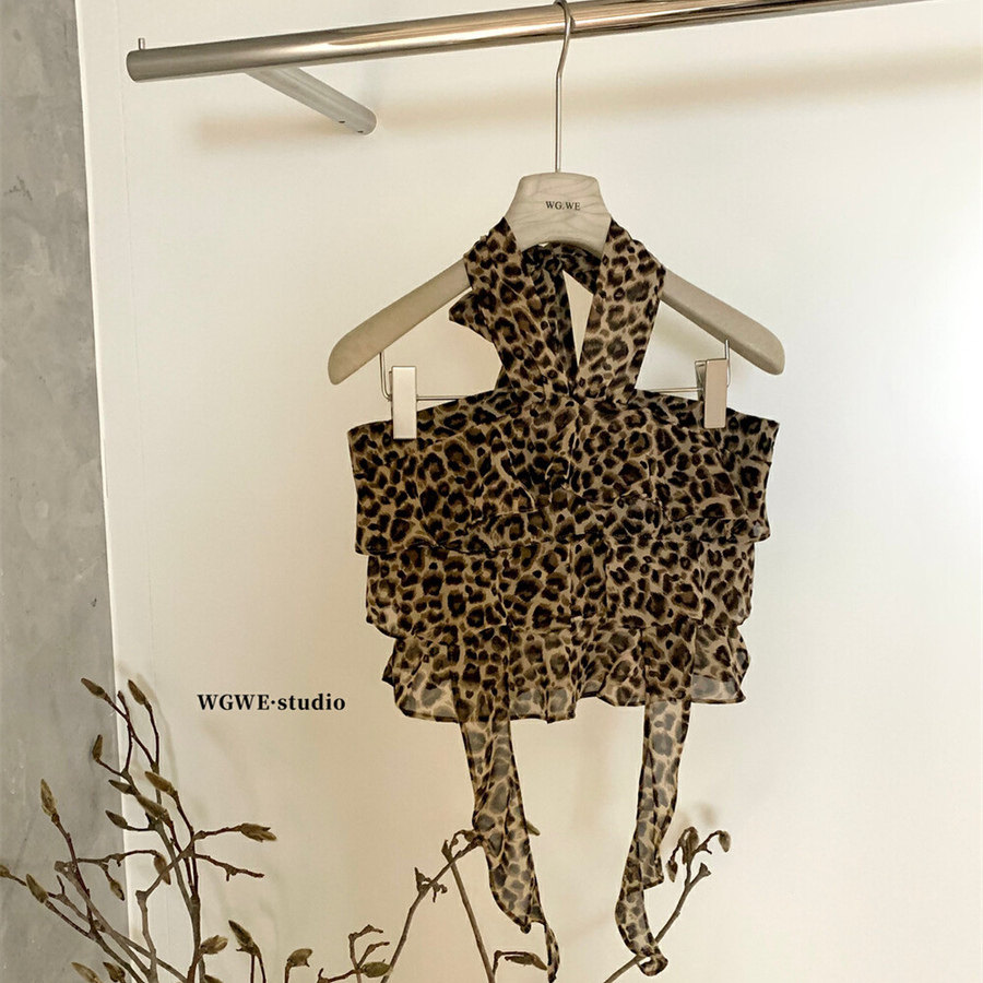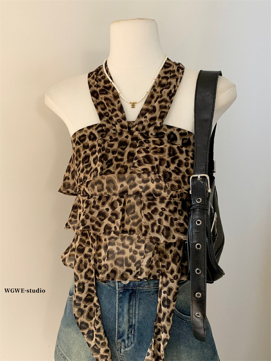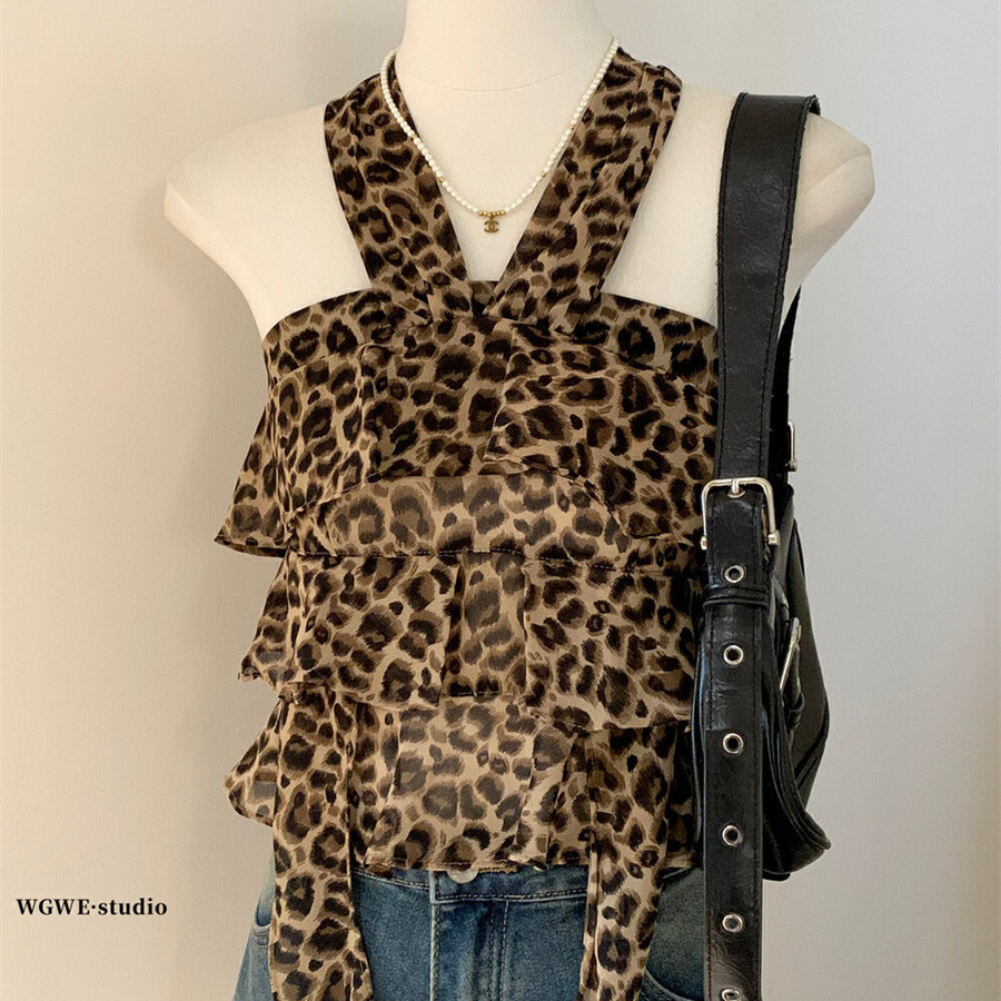 WGWE2025 летняя и корейская версия, универсальный утягивающий топ с леопардовым принтом, ремень на шее, топ с открытой спиной для горячих девушек, трендовый жилет