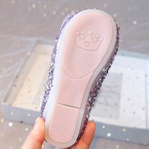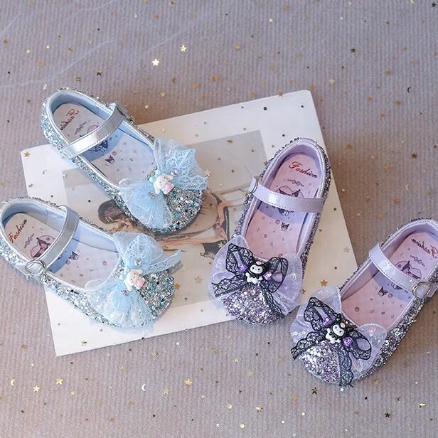 Кожаные туфли с кристаллами корицы и собак для девочек, нескользящая обувь на мягкой подошве с большими ушками, обувь принцессы для девочек, обувь принцессы с сеткой и бантом, одиночные туфли