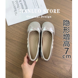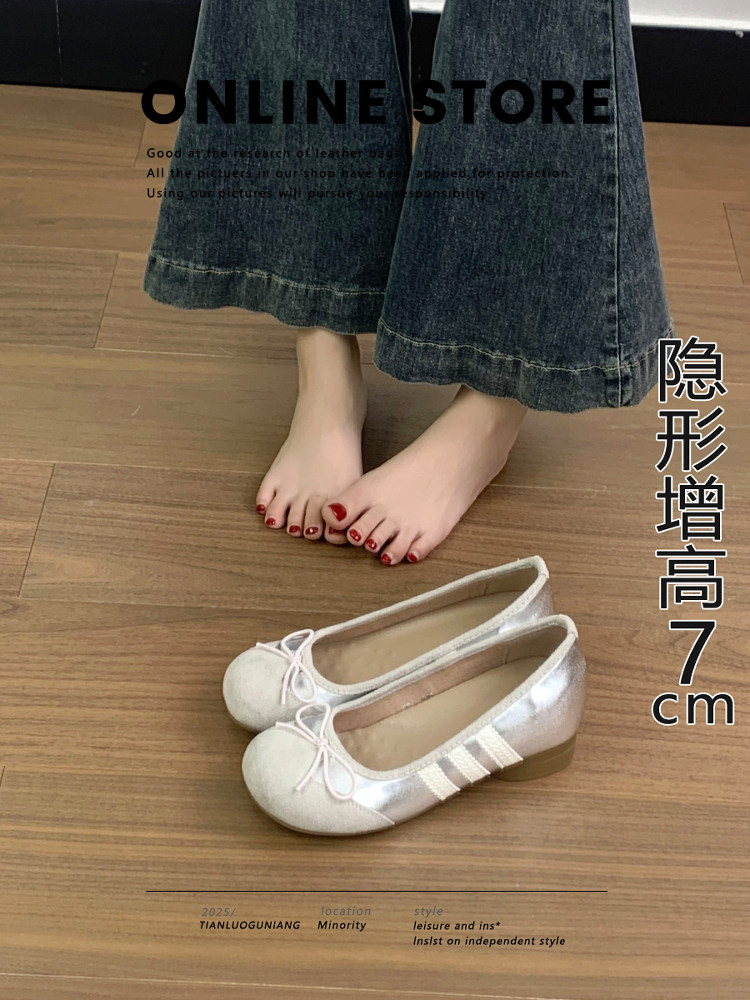 Высокие балетки с бантиком, серебряная обувь с низким вырезом, 7см, мягкая подошва, против усталых ног