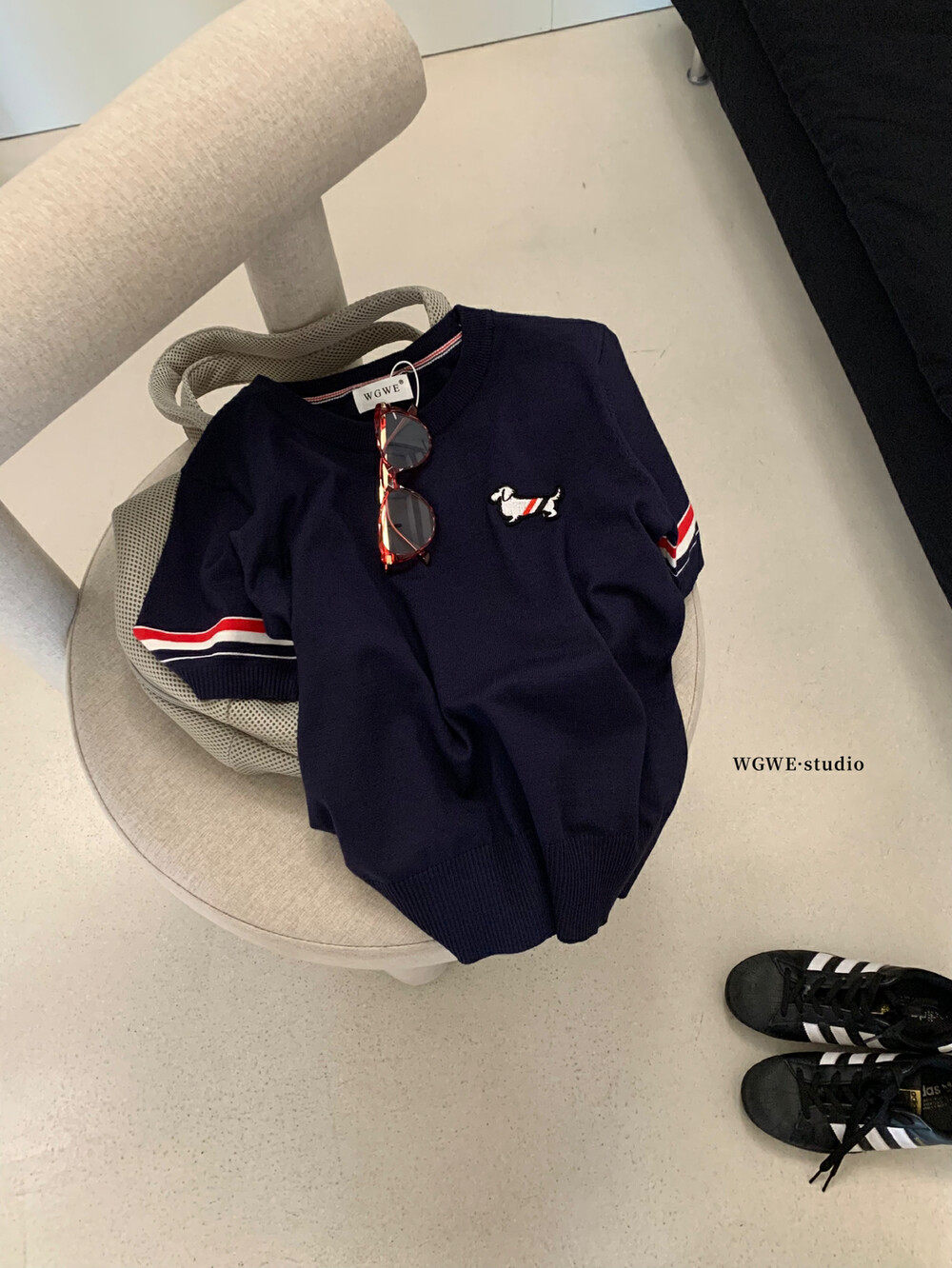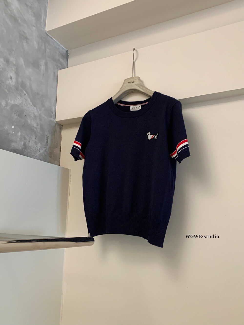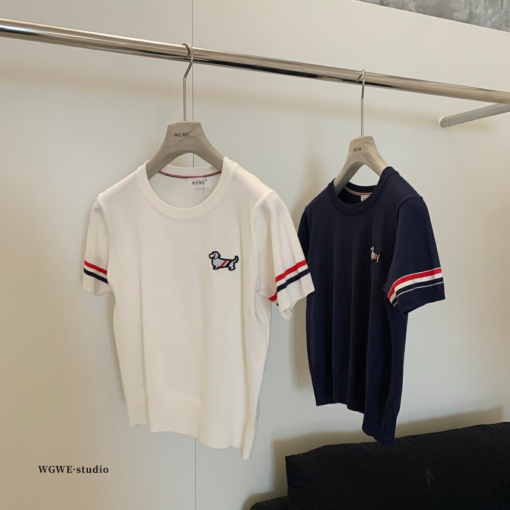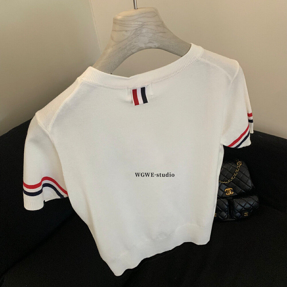 WGWE2025 Летняя корейская версия, универсальный облегающий вязаный женский универсальный возрастной короткий топ с короткими рукавами и вышивкой для щенков