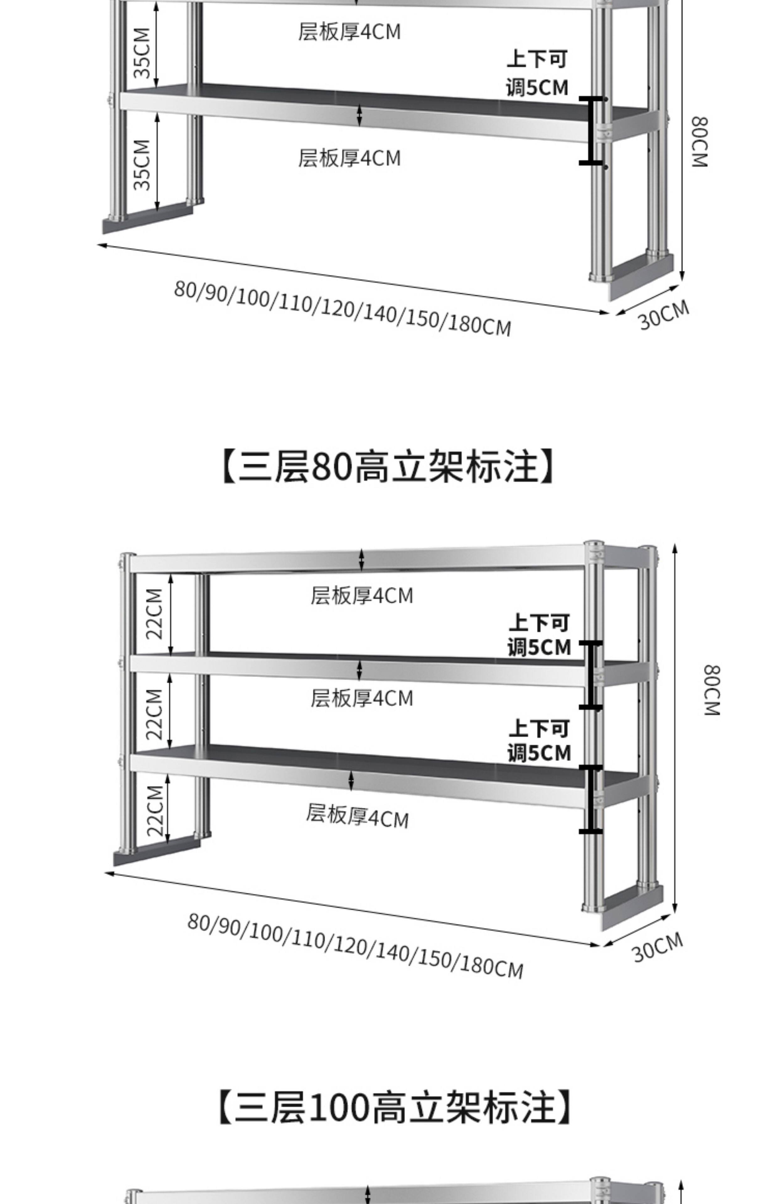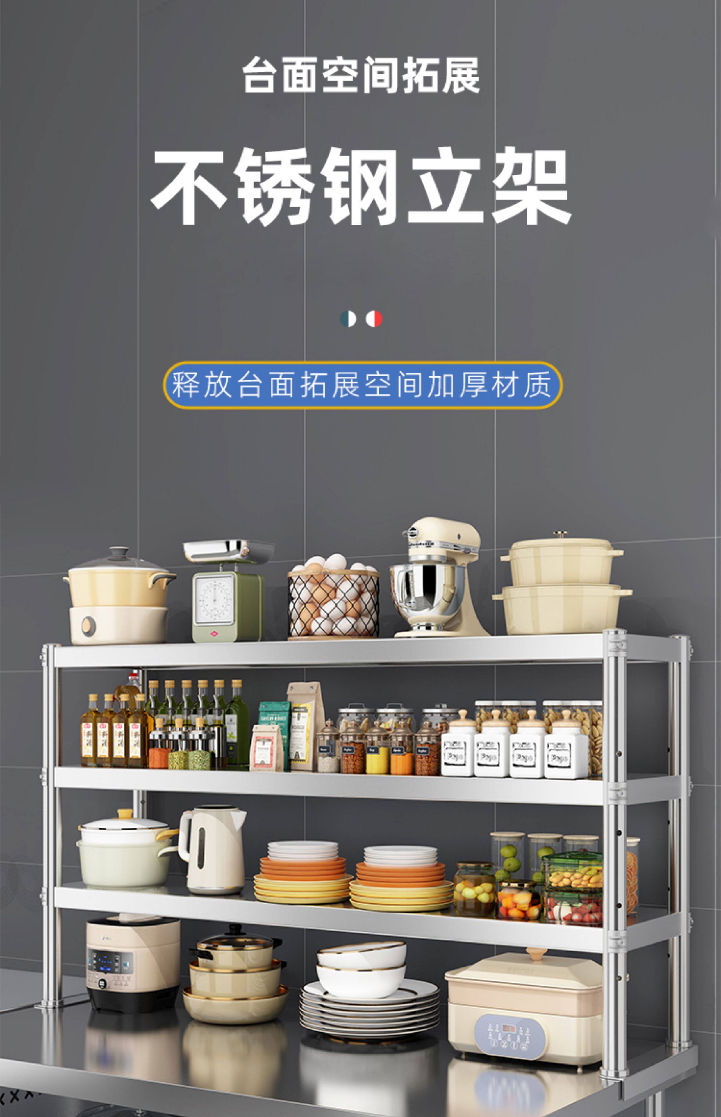Прямые продажи с фабрики, подставка из нержавеющей стали, трехслойная подставка для рабочего стола, столешница, кухонная двухслойная стойка для хранения, работа