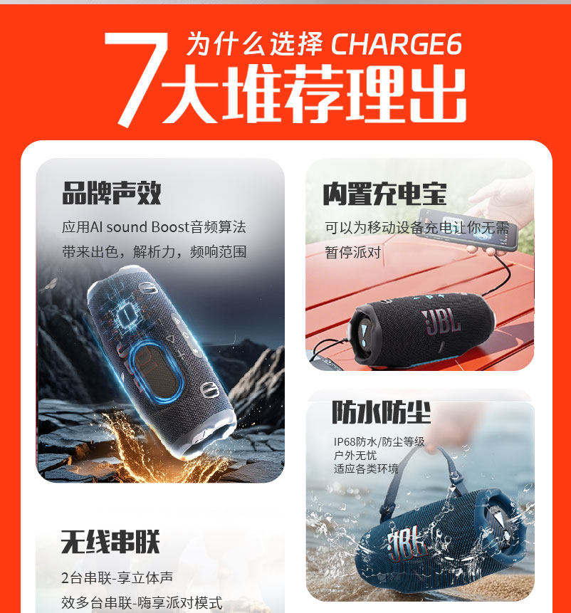 JBL CHARGE6 Audio Shockwave Six Беспроводной портативный Bluetooth-динамик Высококачественный водонепроницаемый уличный Shockwave 6