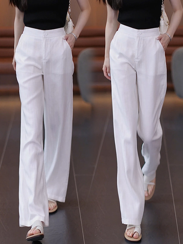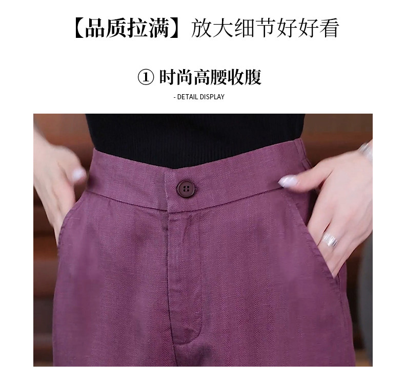 Тонкие летние сиреневые штаны для отдыха, из хлопка и льна