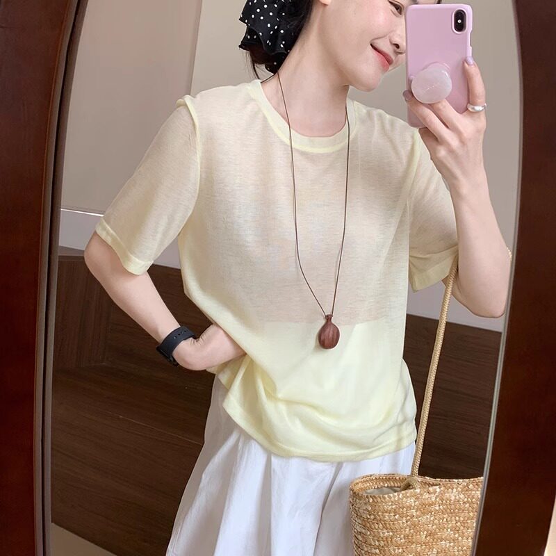 Маска для лица, летняя тонкая футболка, короткий рукав, оверсайз, изысканный стиль