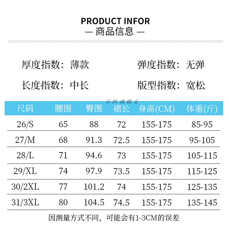 | Размер: | 26/с предложение 85-95 Catties, 27/м предложение 95-105 Catties, 28/L Рекомендуется 105-115 кот, 29/XL Предложение 115-125 кот, 30/2xl Предложение 125-135 Catties, 31/3xl Предложение 135-145 кот |