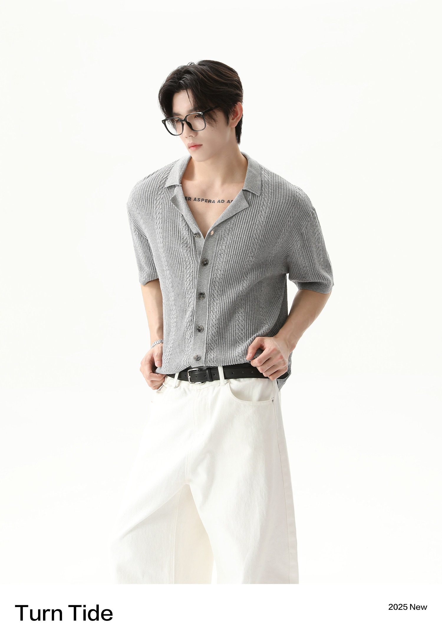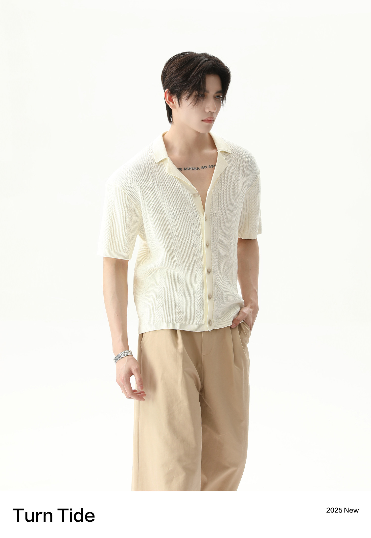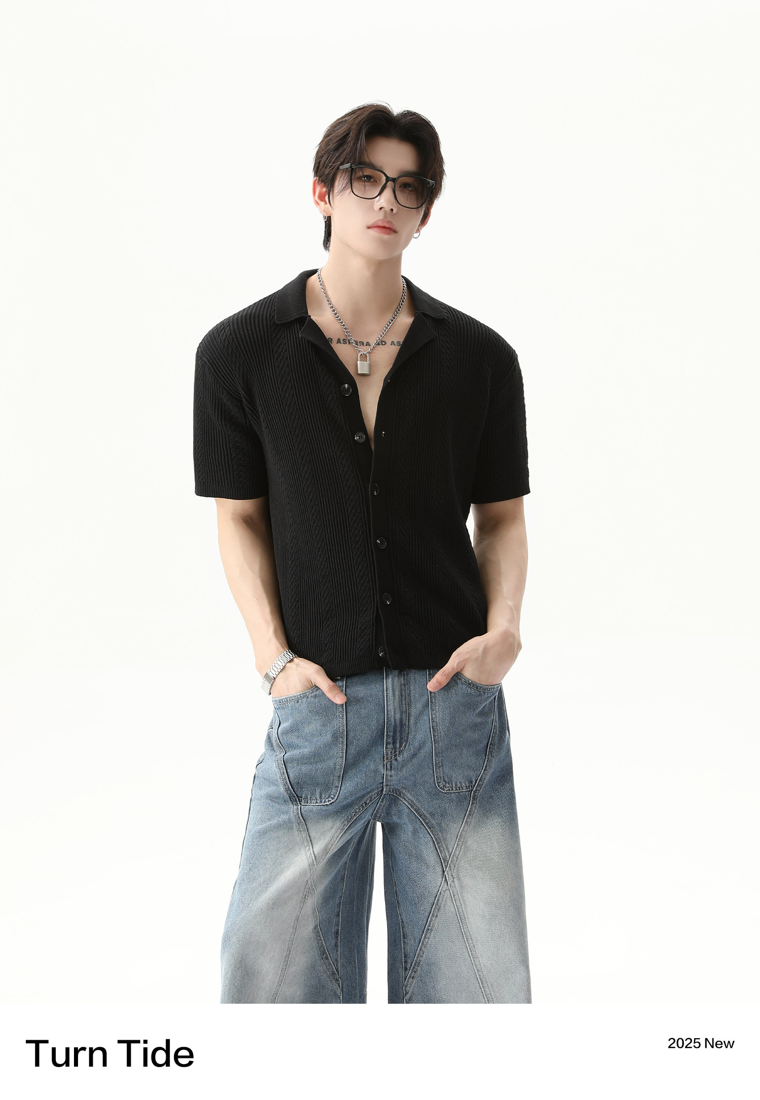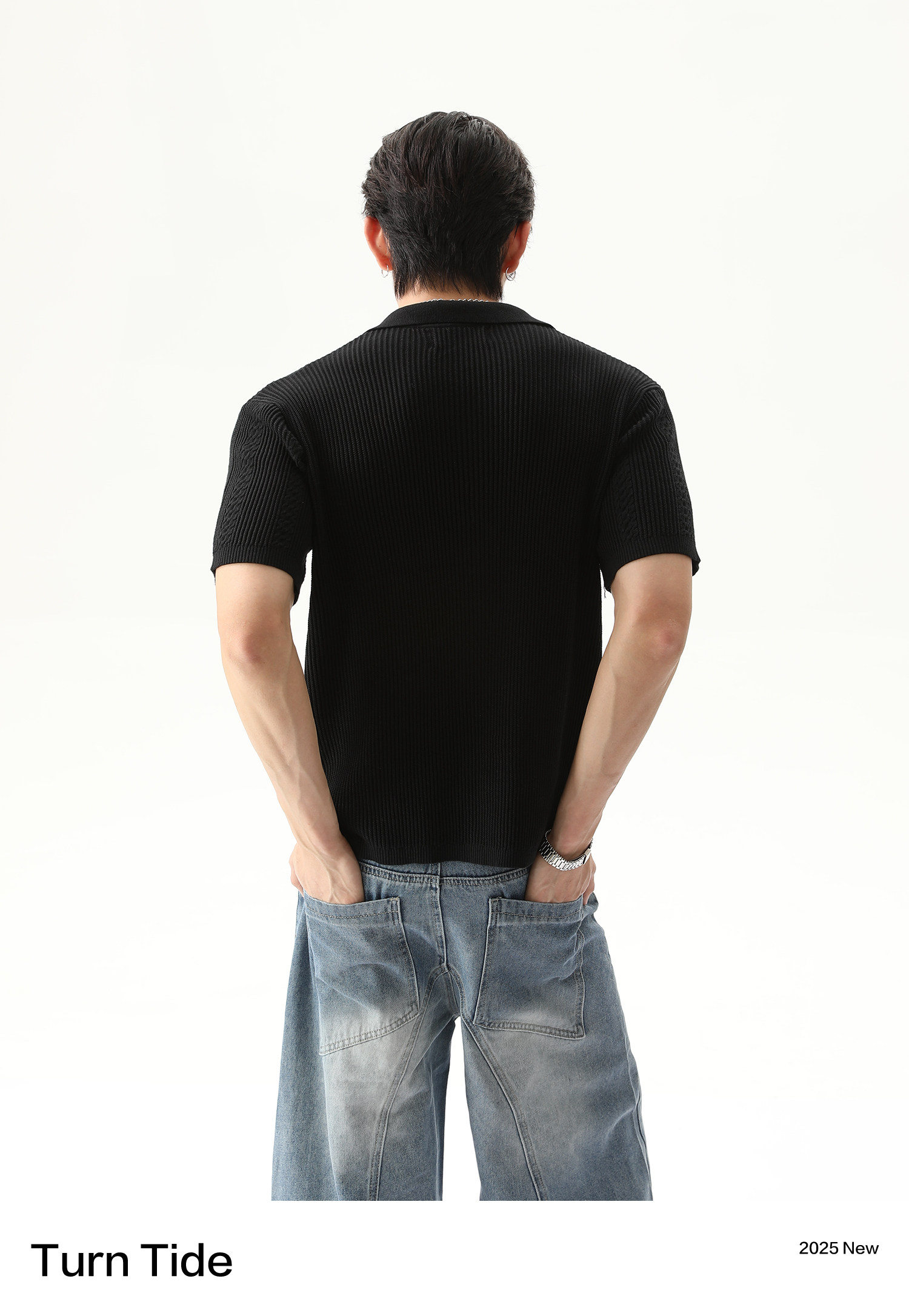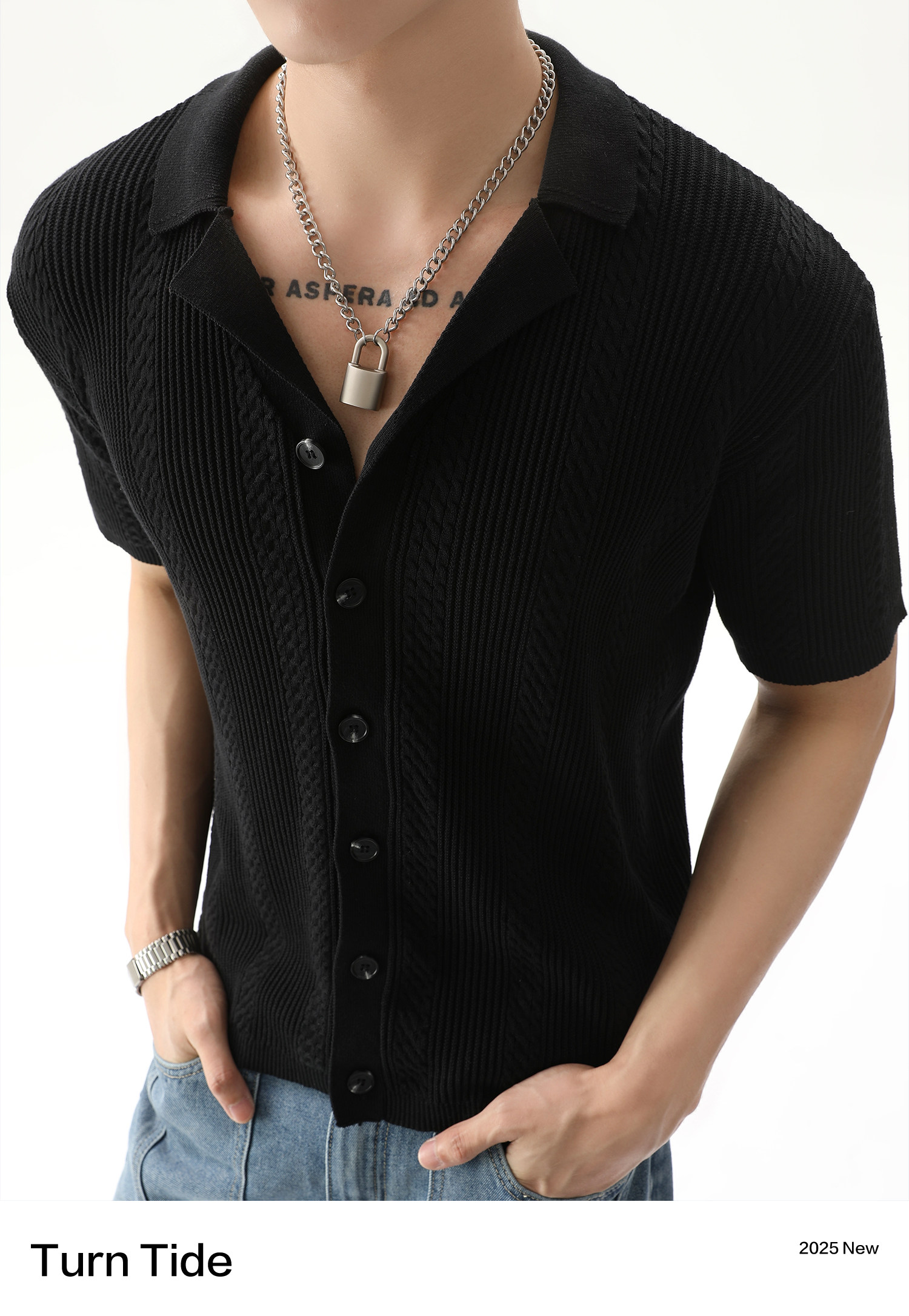 TURNTIDE ниша, простая однотонная трикотажная рубашка с лацканами и короткими рукавами, открытая 𫔭 повседневная рубашка 𫔮 универсальный внешний летний топ
