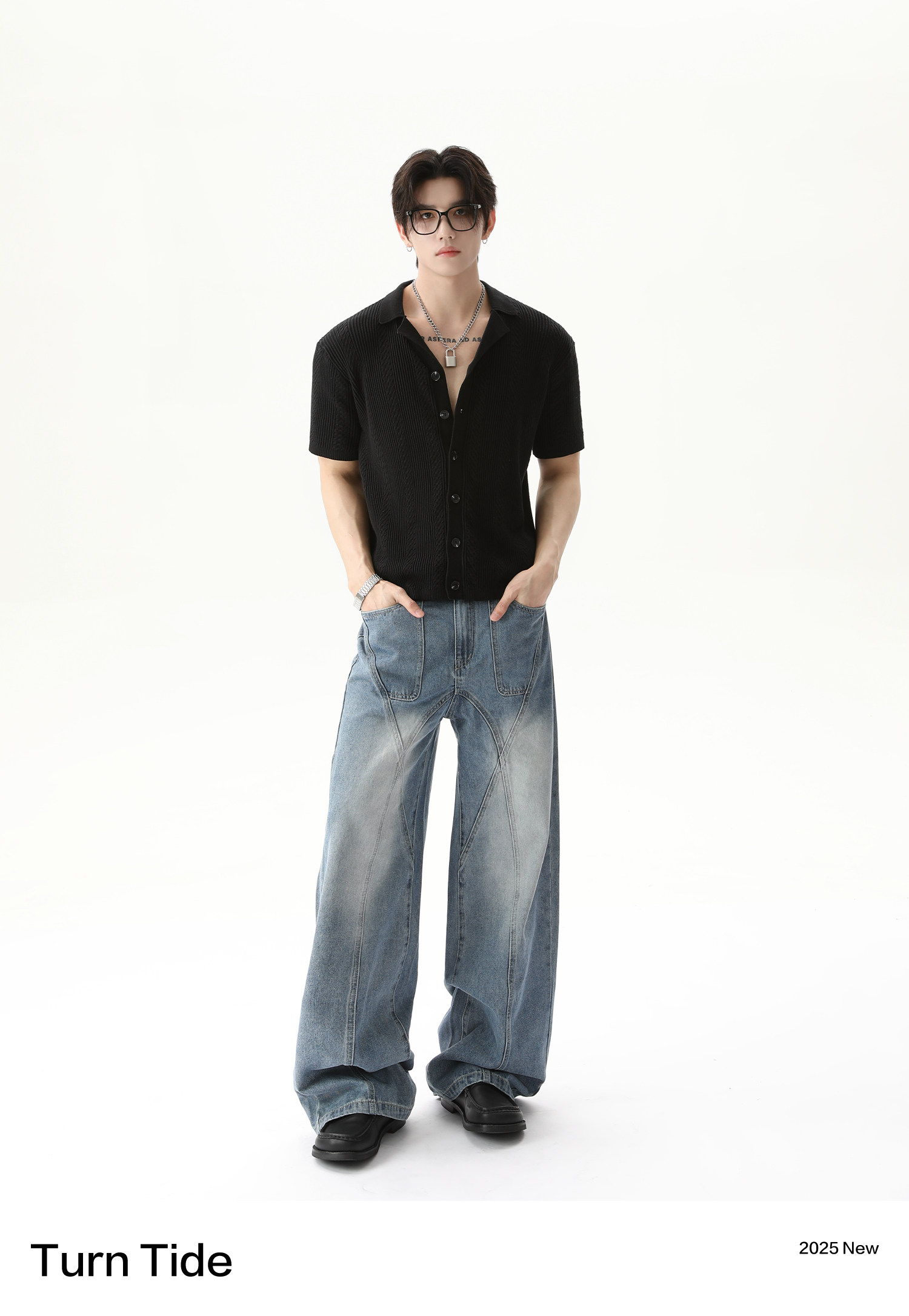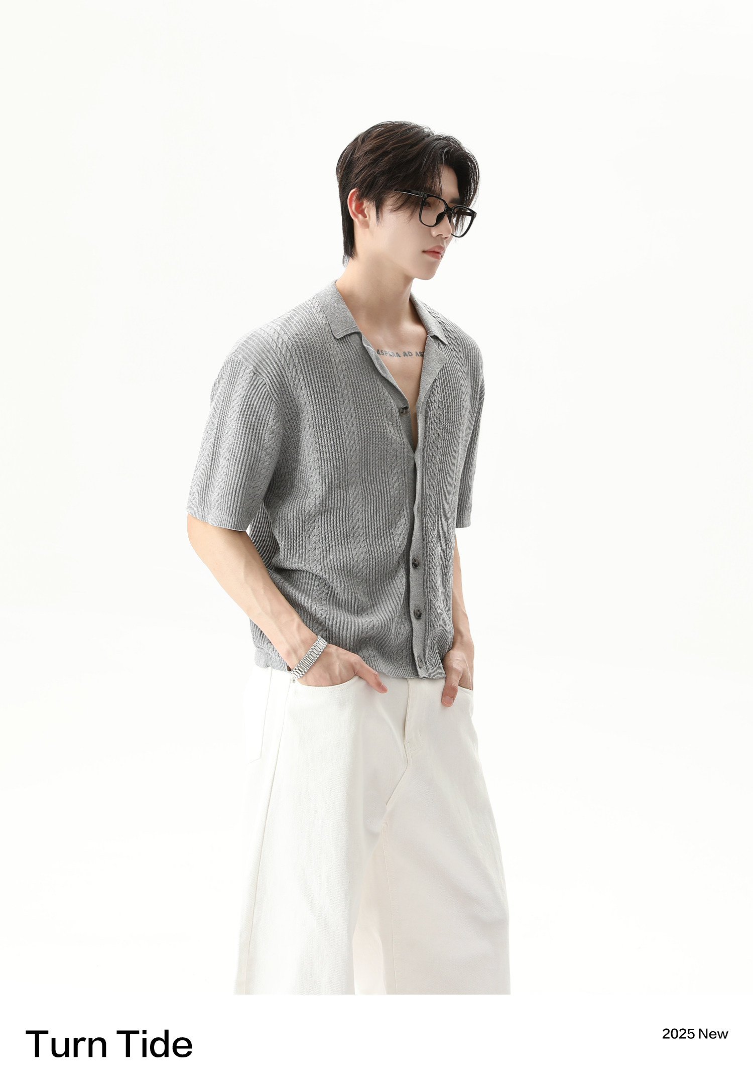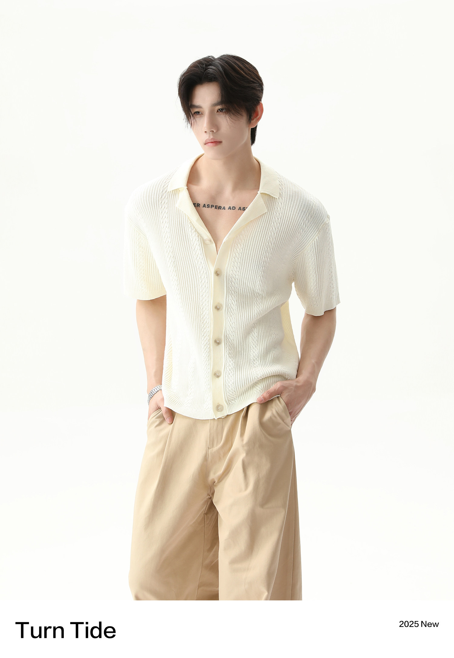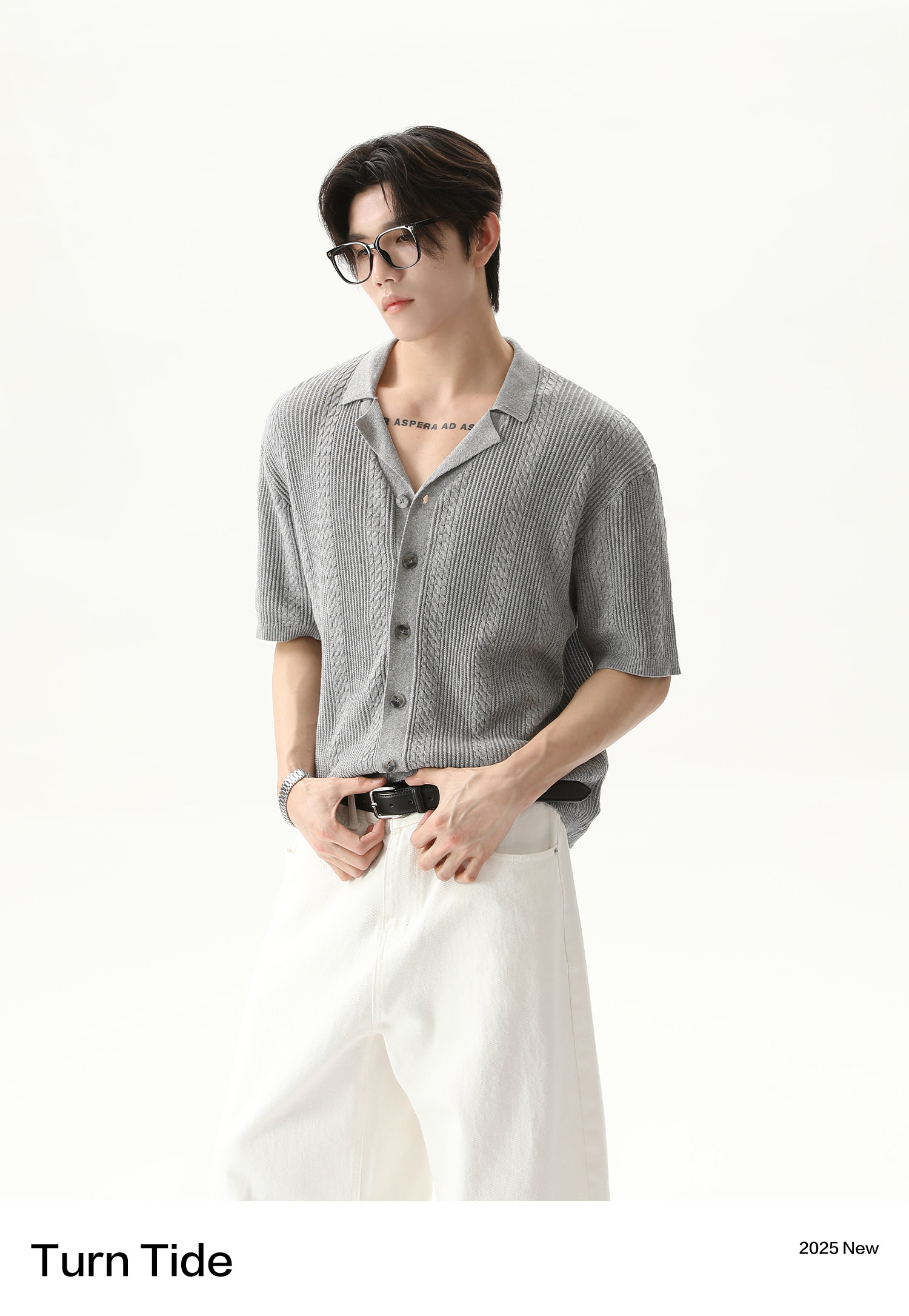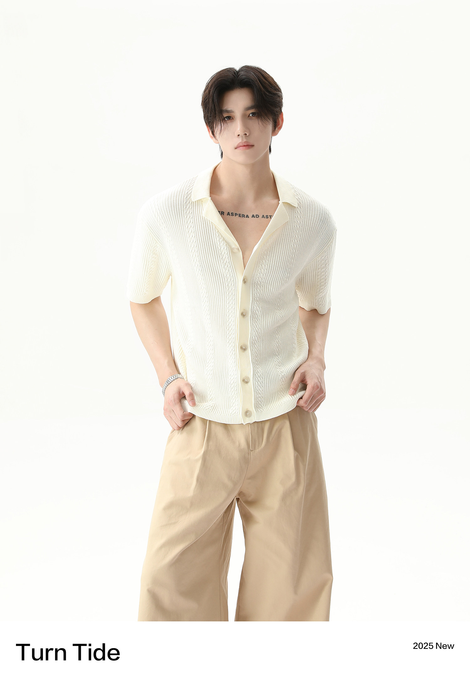 TURNTIDE ниша, простая однотонная трикотажная рубашка с лацканами и короткими рукавами, открытая 𫔭 повседневная рубашка 𫔮 универсальный внешний летний топ