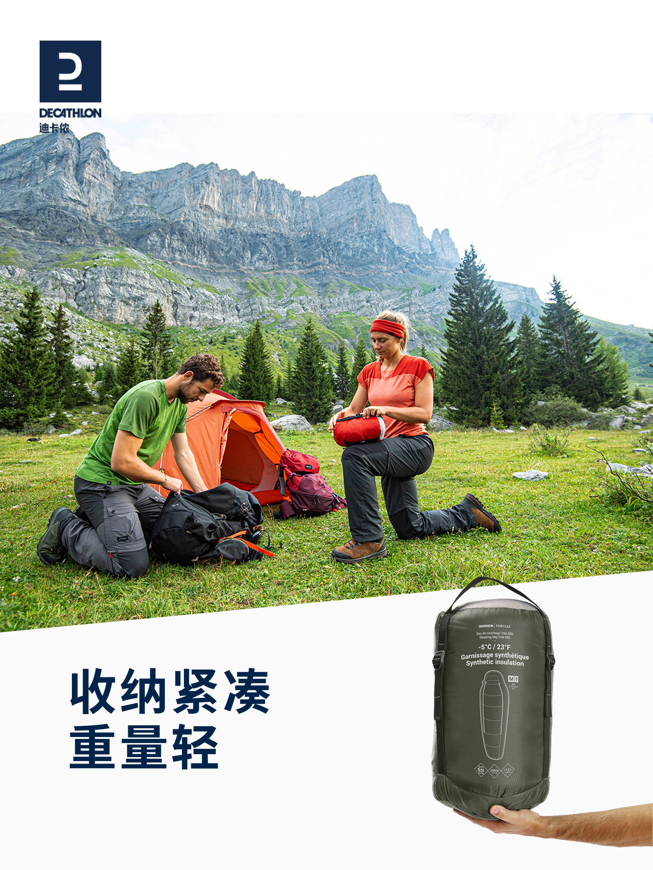 Decathlon, дорожный удерживающий тепло портативный зимний спальный мешок для кемпинга для путешествий, увеличенная толщина