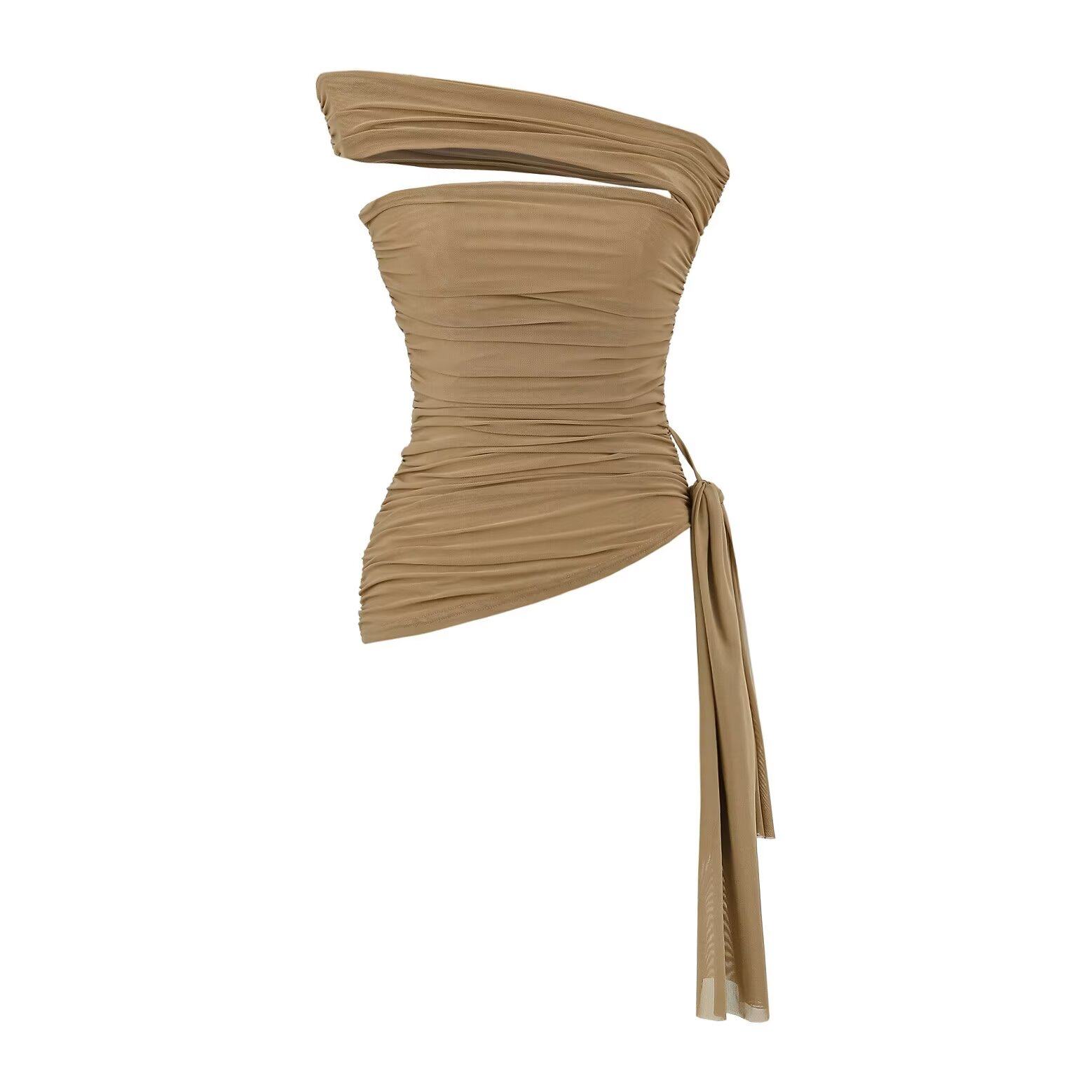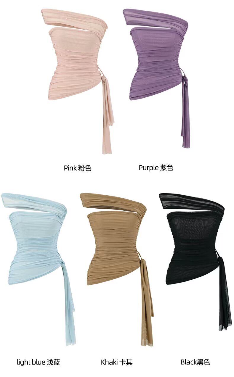 Зилу модные продукты, европейский и американский стиль Новая чистая горячая девушка с одной длиной сетки с сеткой без бретелек.