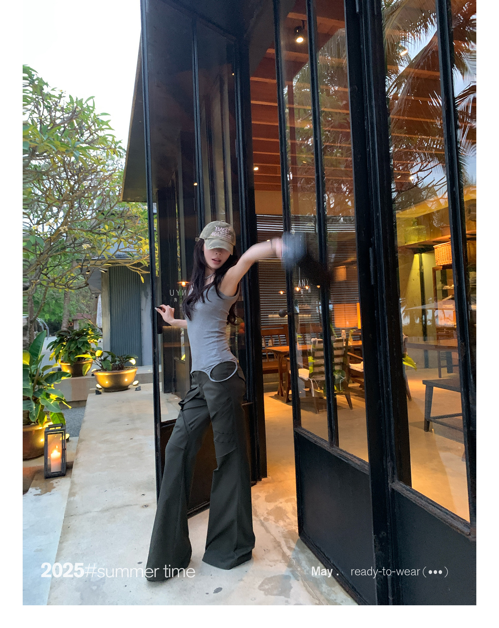 【Пятно】 Sunoneone Шерсть с двойным шерстяным жилетом с двойным шрифтом для женского летнего вырезового топа с сплайсингом