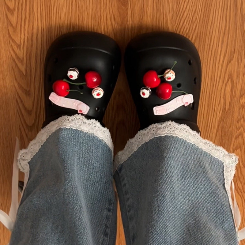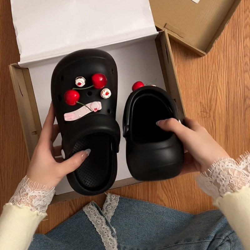 Сетчатая черная милая обувь на платформе, летние высокие слайдеры, популярно в интернете