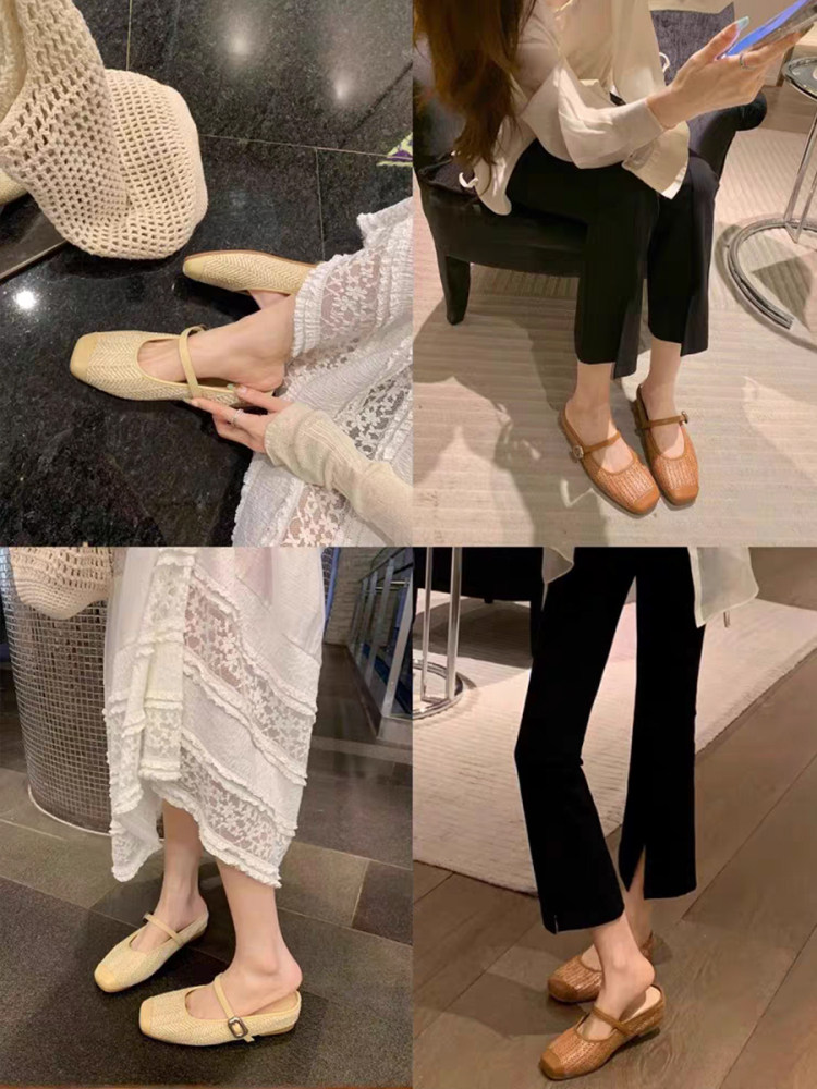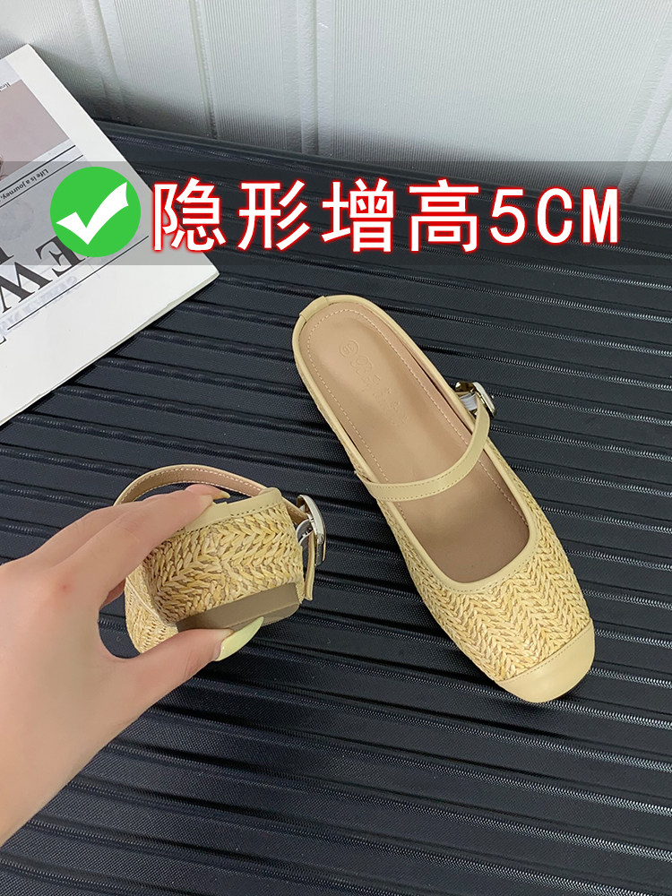 Высокие плетеные тапочки, обувь, слайдеры, из натуральной кожи, 5см, французский стиль