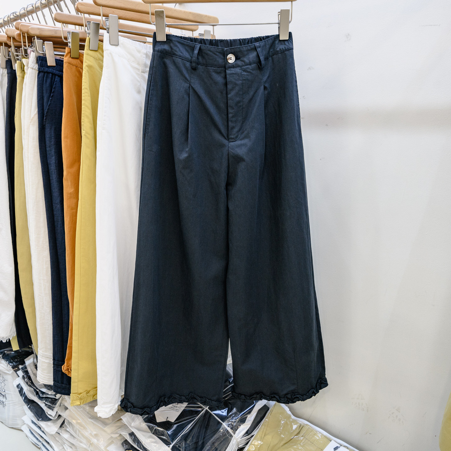 Модные брюки с широкими ногами, чтобы показать свою длинную фигуру
