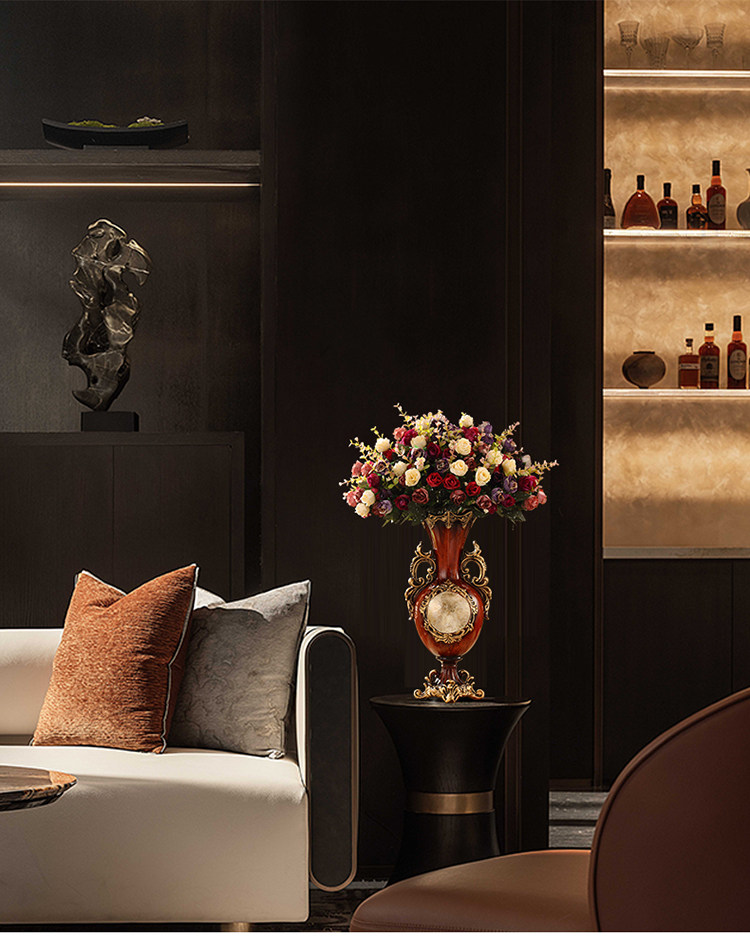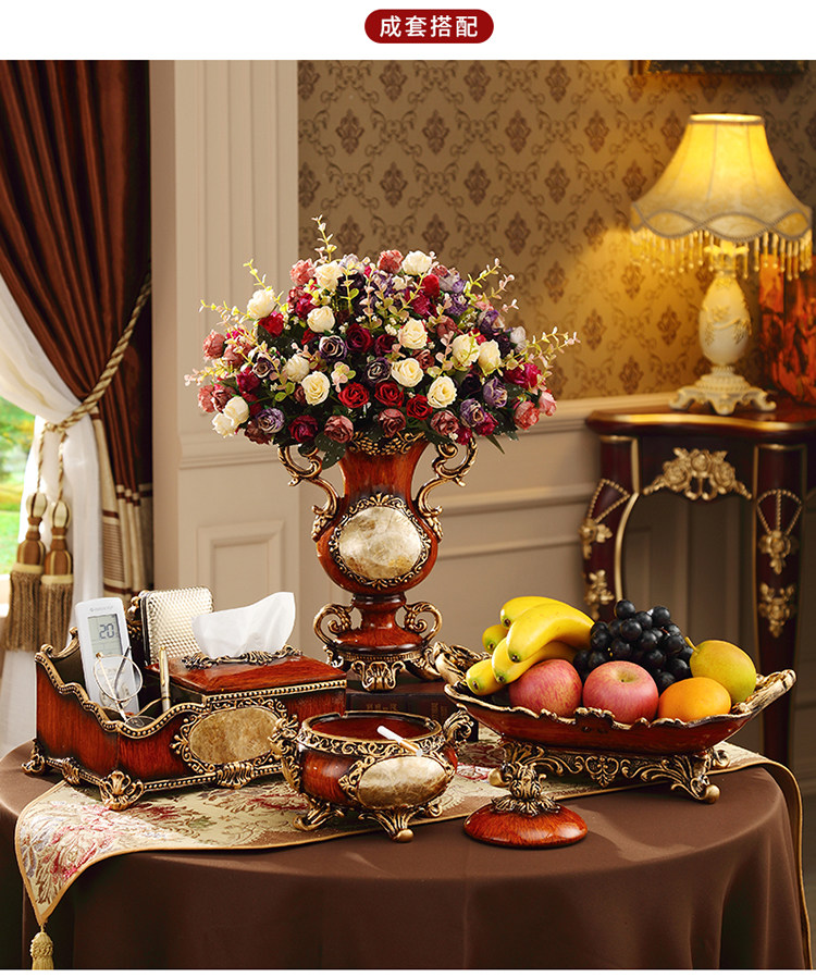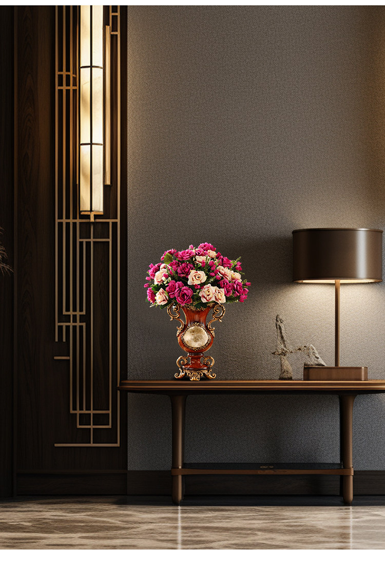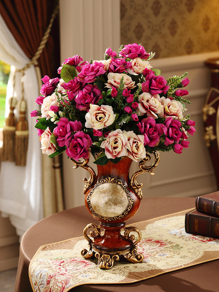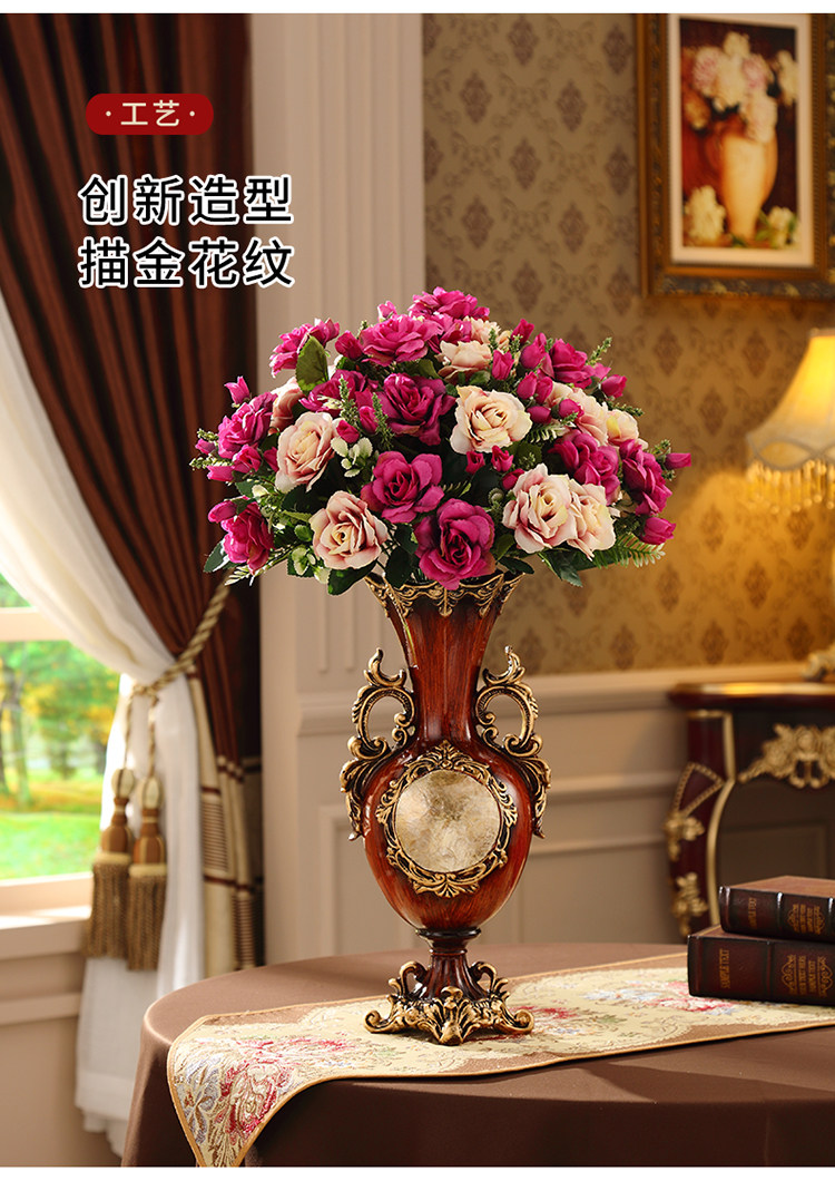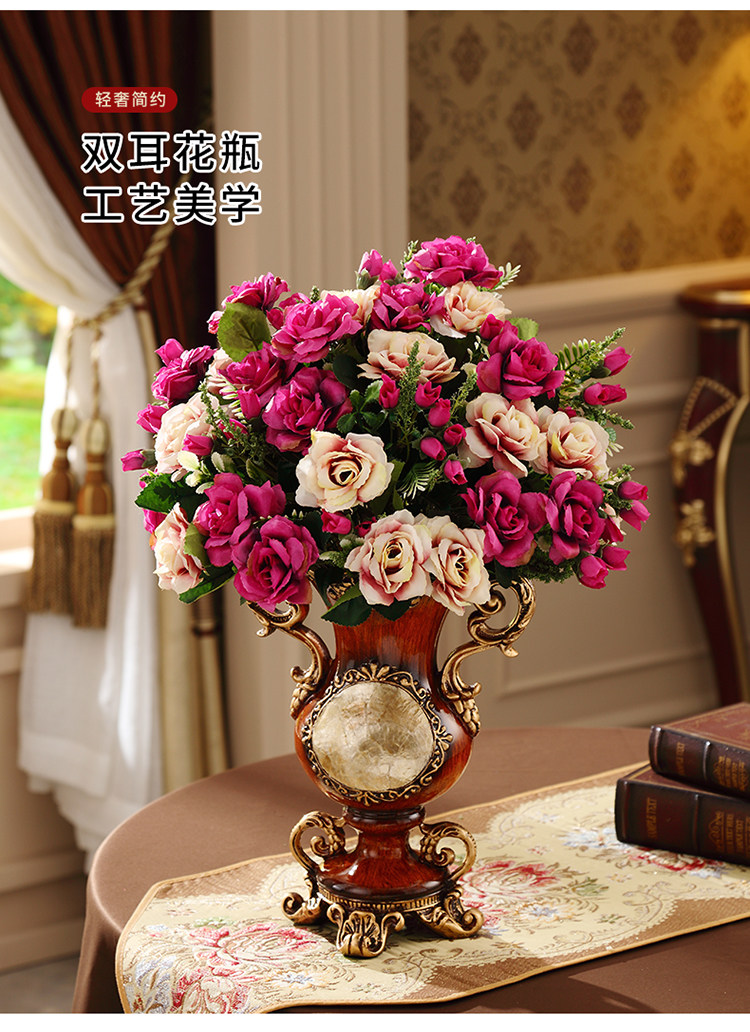 Мягкая отделка в европейском стиле ретро, легкий роскошный обеденный стол, тумба под телевизор, украшение для входа, цветочная композиция, настольная искусственная ваза для цветов.