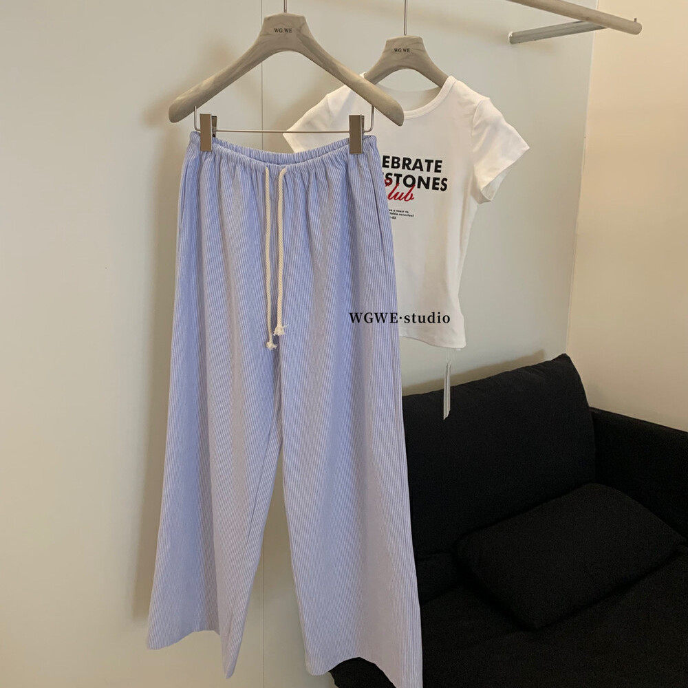 Штаны для отдыха, в корейском стиле, эластичная талия, на шнурках, свободный прямой крой