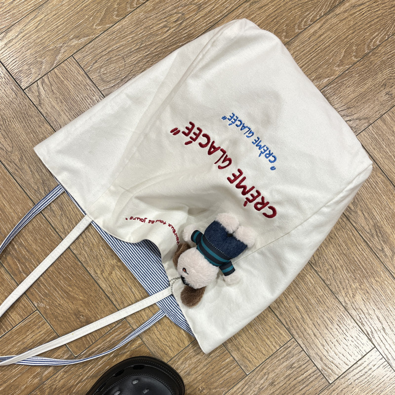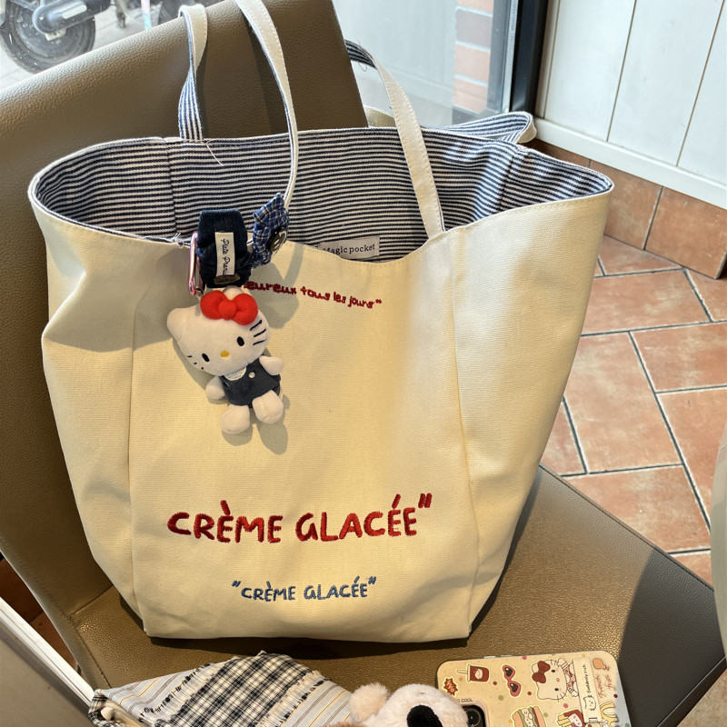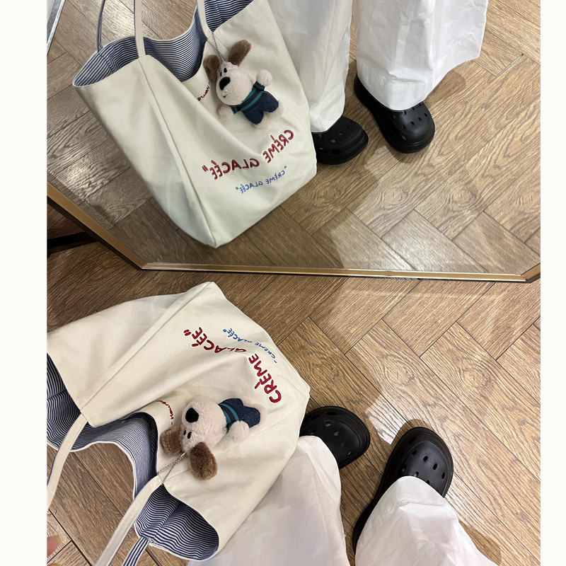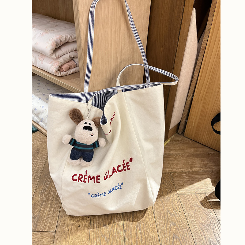 Вместительный и большой двусторонний шоппер, сумка на одно плечо, универсальная сумка через плечо, в корейском стиле, с вышивкой