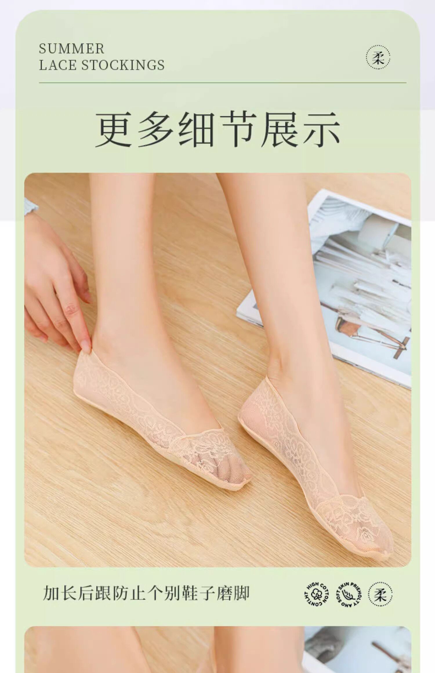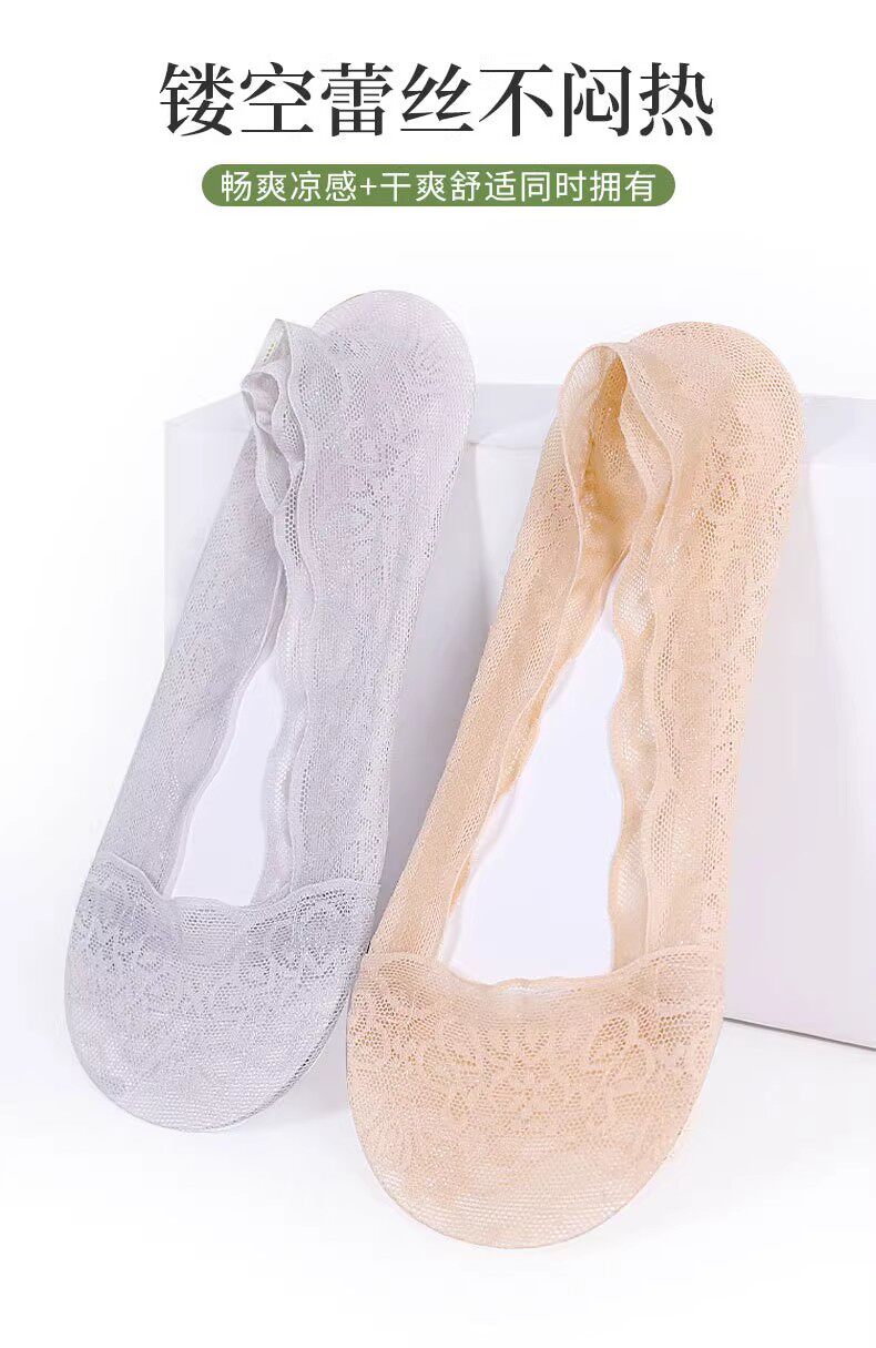 Кружевные нескользящие хлопковые летние тонкие невидимые носки