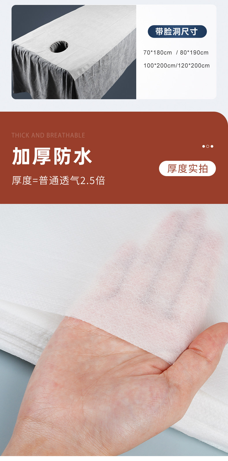 Одноразовая косметическая простыня, водостойкий косметический нетканый массажер, для салонов красоты, увеличенная толщина