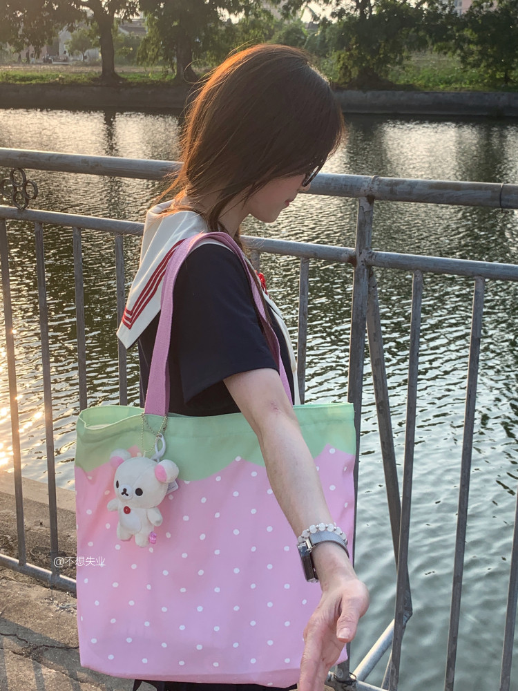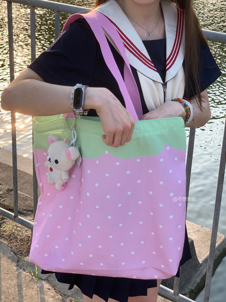 Оригинальная клубника, японская универсальная вместительная и большая сумка на одно плечо, шоппер
