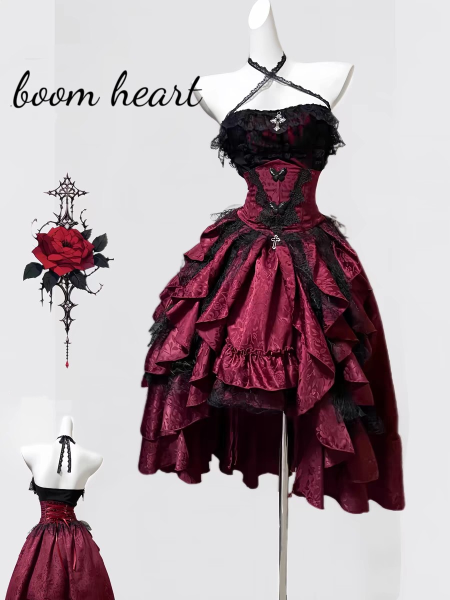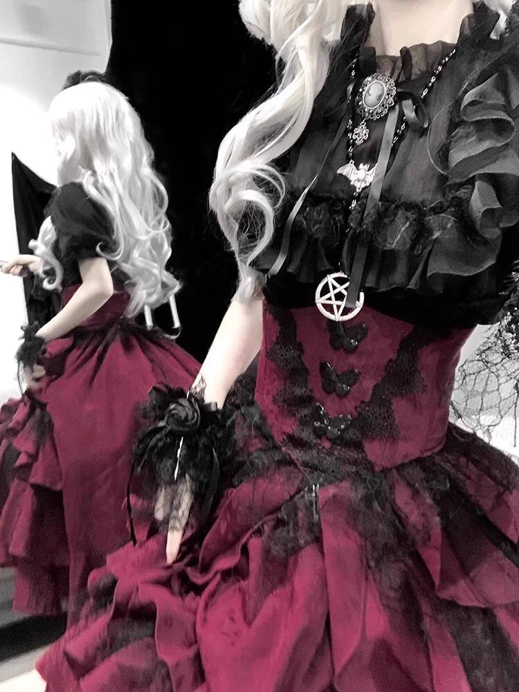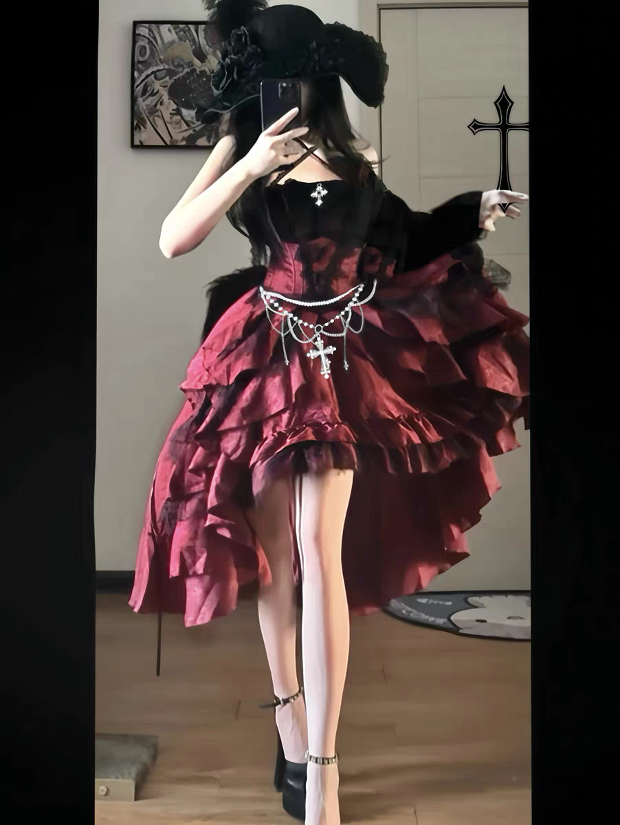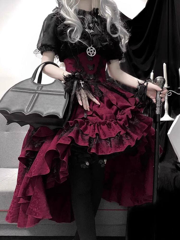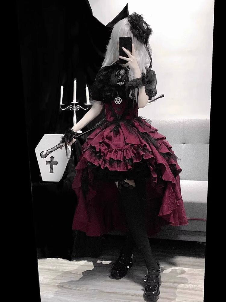 夜莺少女 Кружевной бордовый жилет, юбка, комплект, стиль Лолита