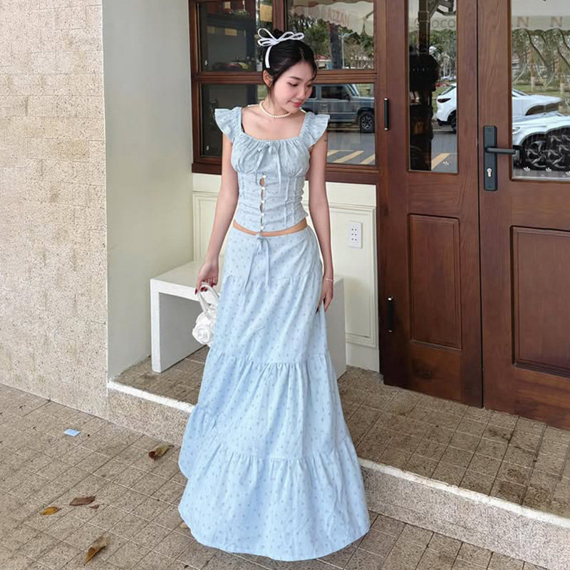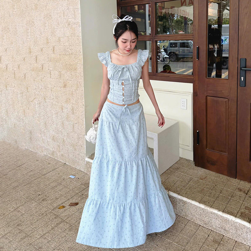 WEEKEEP Свежий гаечный ключ, футболка, ремень, юбка в складку, длинная юбка, цветочный принт, облегающий крой, А-силуэт