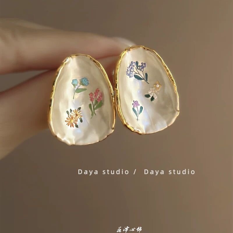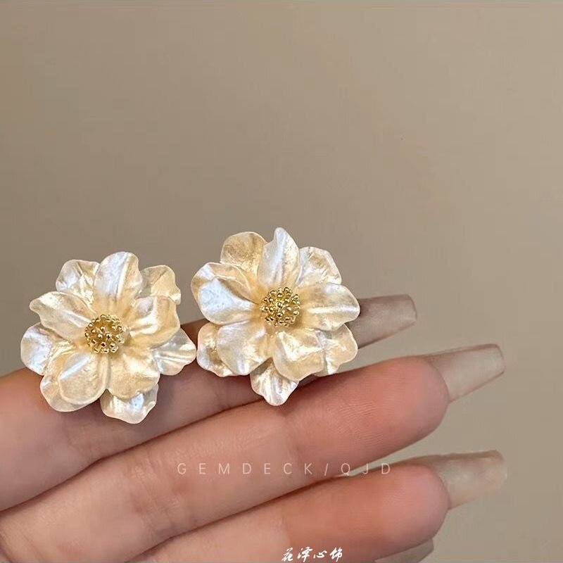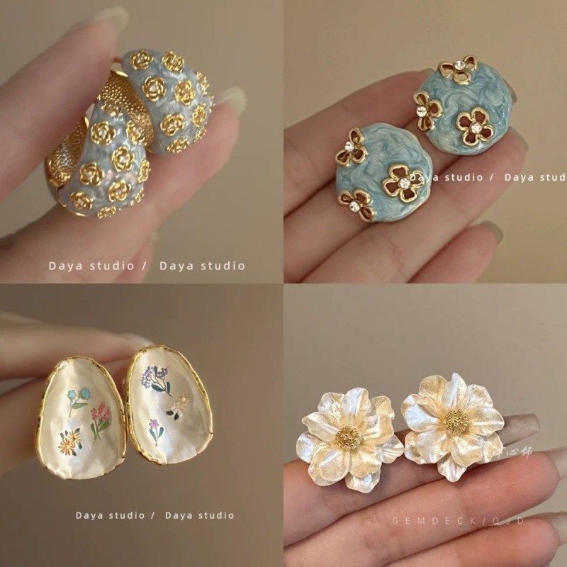 Небольшие серьги с цирконом, французский стиль, в цветочек, легкий роскошный стиль