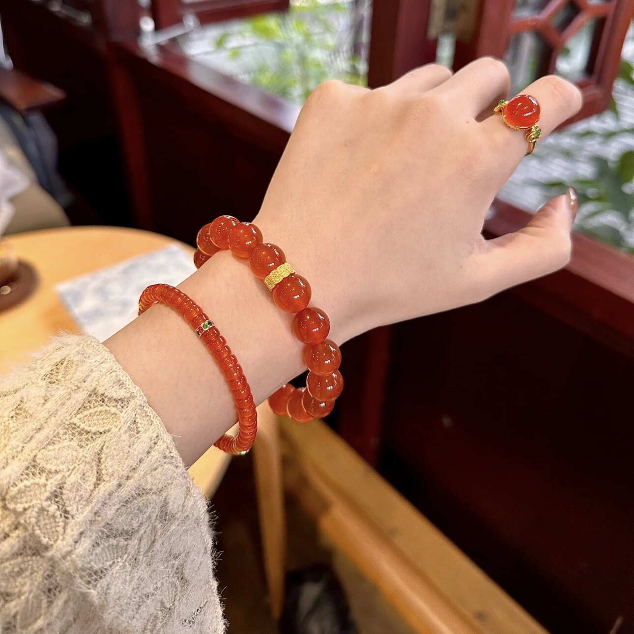 15A78 Натуральный южный красный агат, вырезанные вручную шампуры Baoshan, ледяной красный, 8 мм, один круг, старый материал, вишневый женский, ледяной насквозь