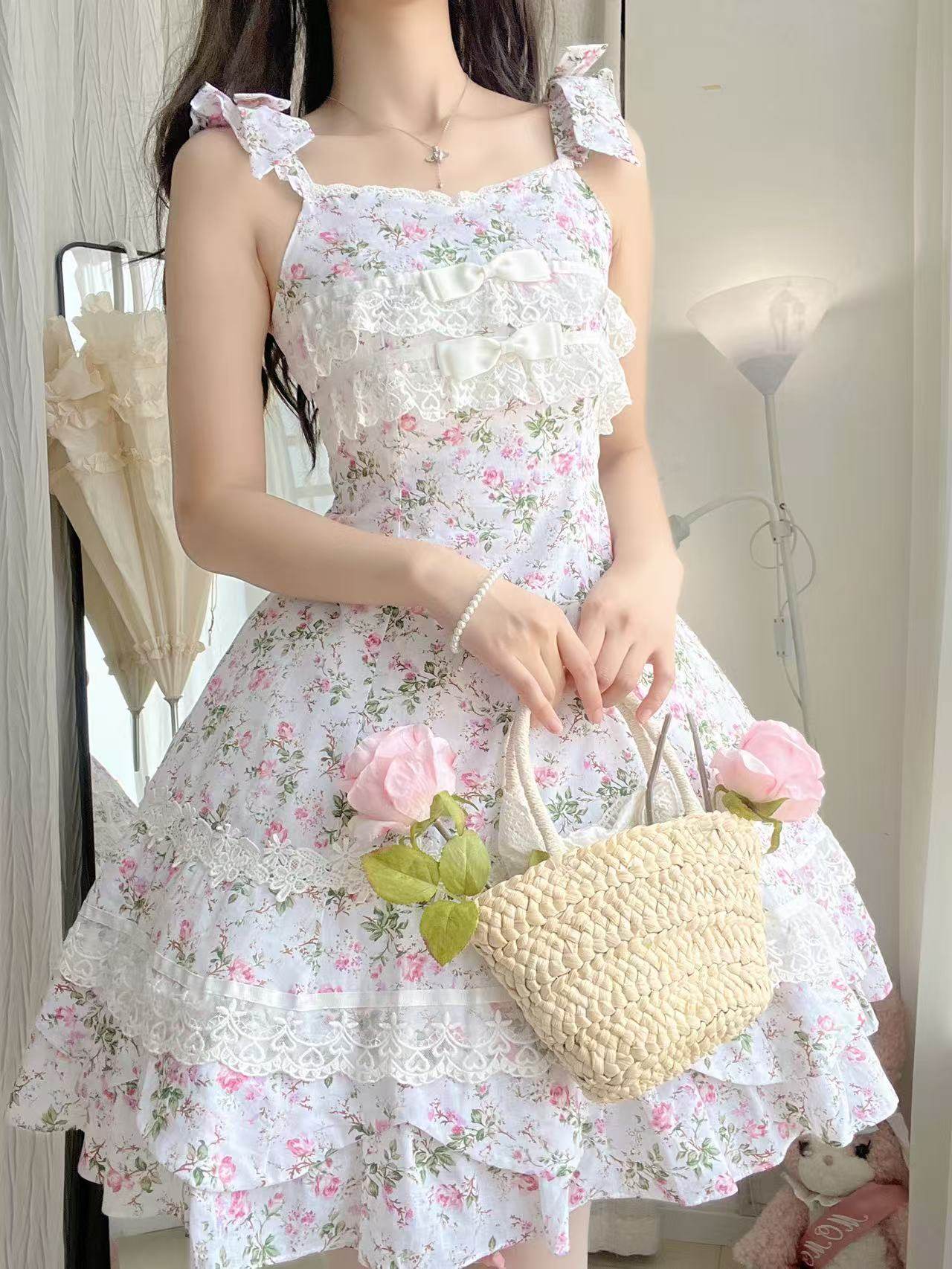 [Полностью забронировано] Женская повседневная юбка с цветочным принтом Magic Tea Party Lolita Original Bonnie из шести предметов