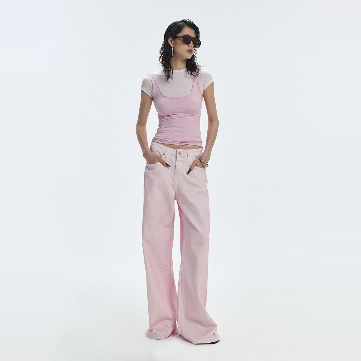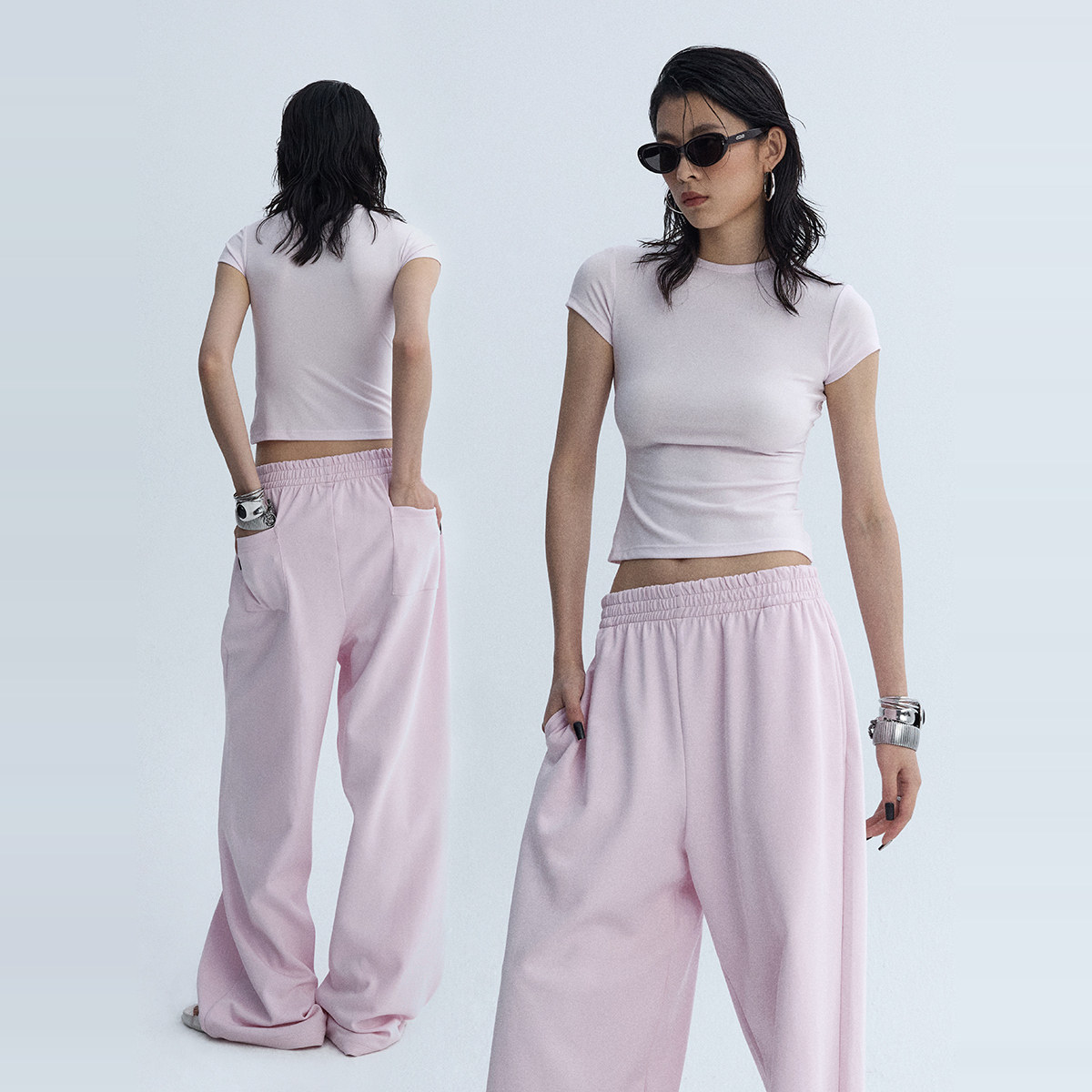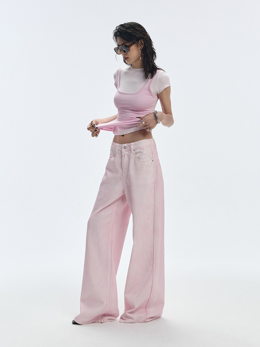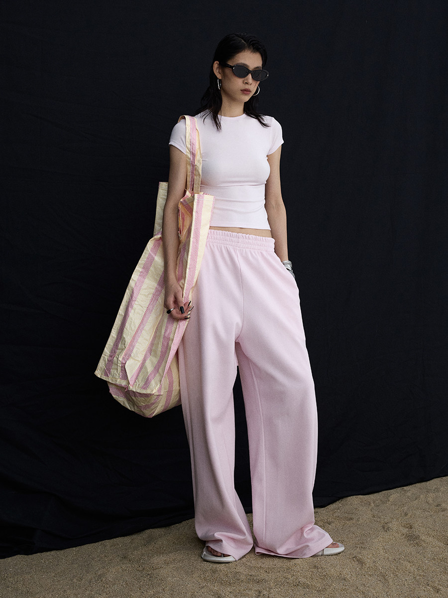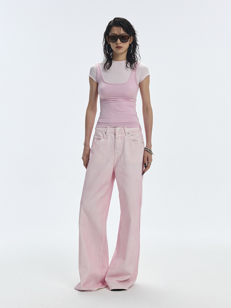 Розовый корсет с круглым воротником, дизайнерская футболка с коротким рукавом, облегающий крой, тренд сезона