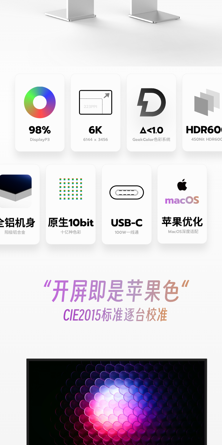 | Классификация цветов: | Black World Design32 6K32 дюйма, разрешение 6016X3384, Silver Design32 6K32 дюйма, разрешение 6016X3384, Yinqi Design32S 6K32 дюйма, разрешение 6144X3456 |