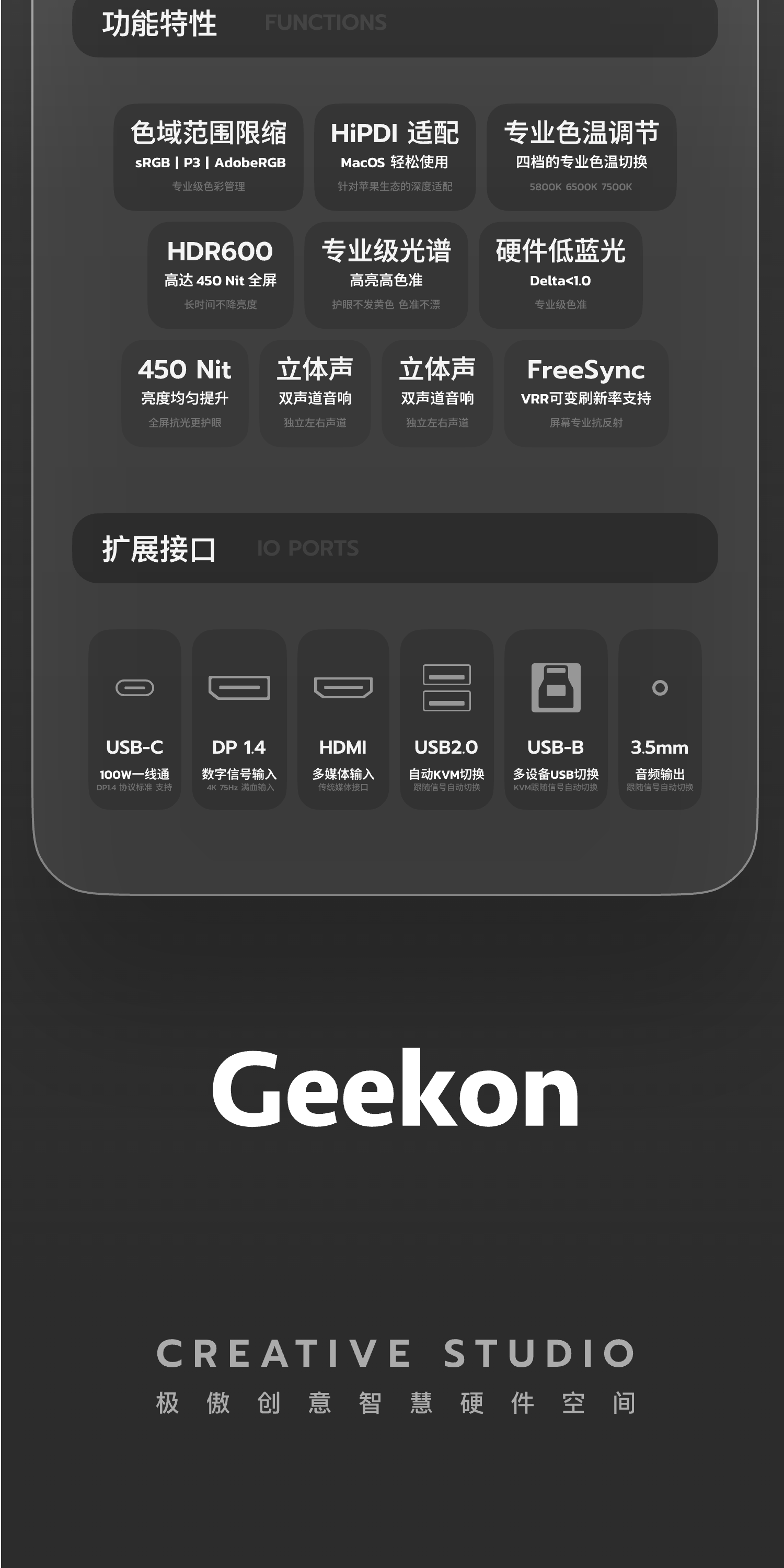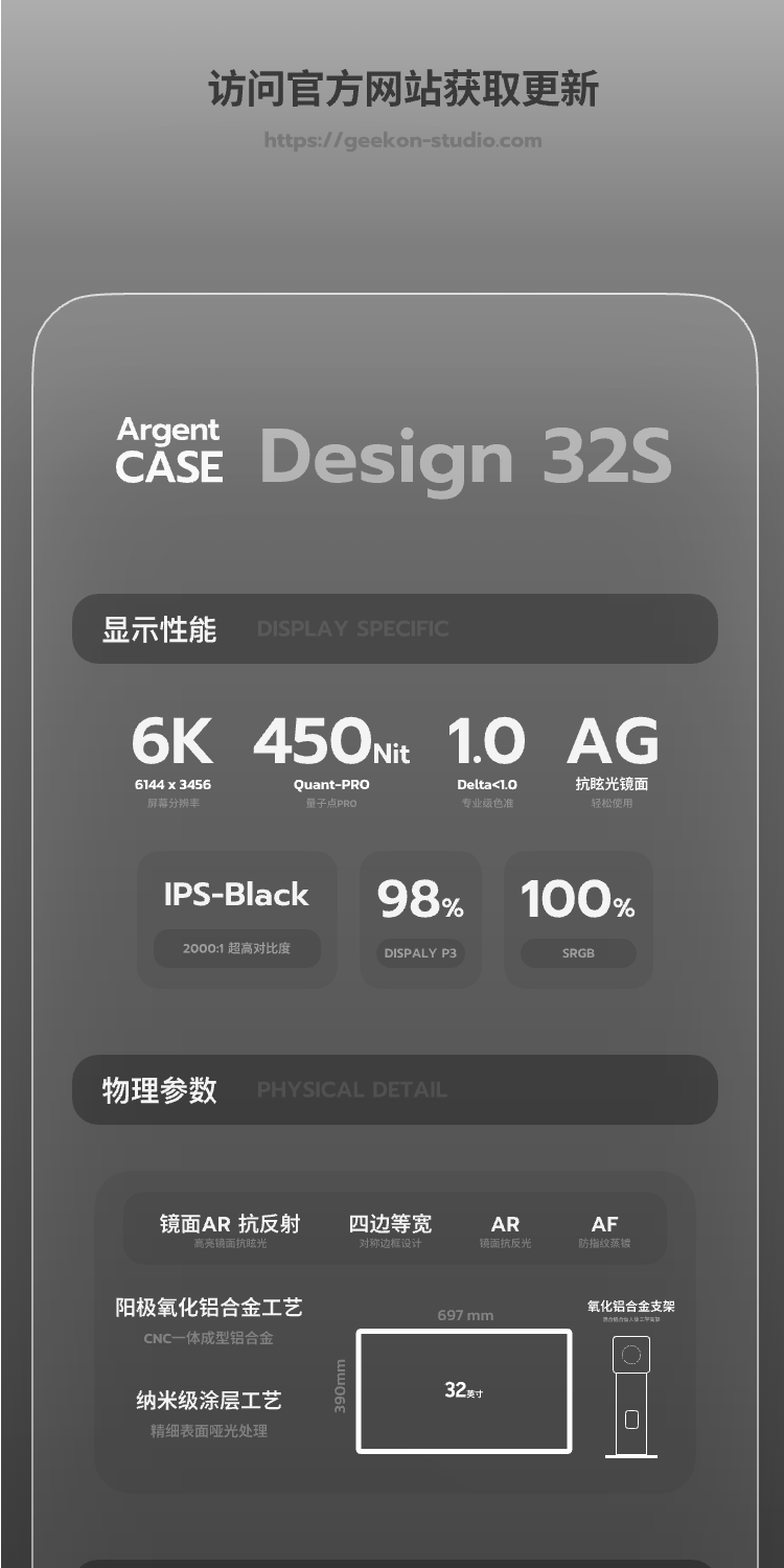 Geekon Silver Black World Design32 Профессиональный дисплей 6K для дизайнеров и фотографов Дисплей Ultra HD