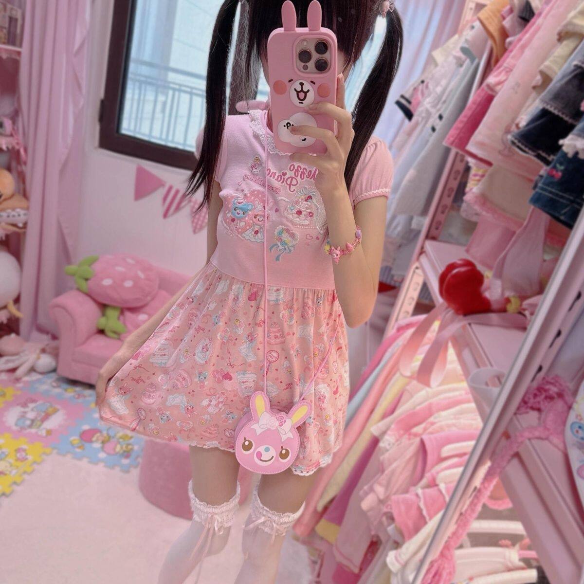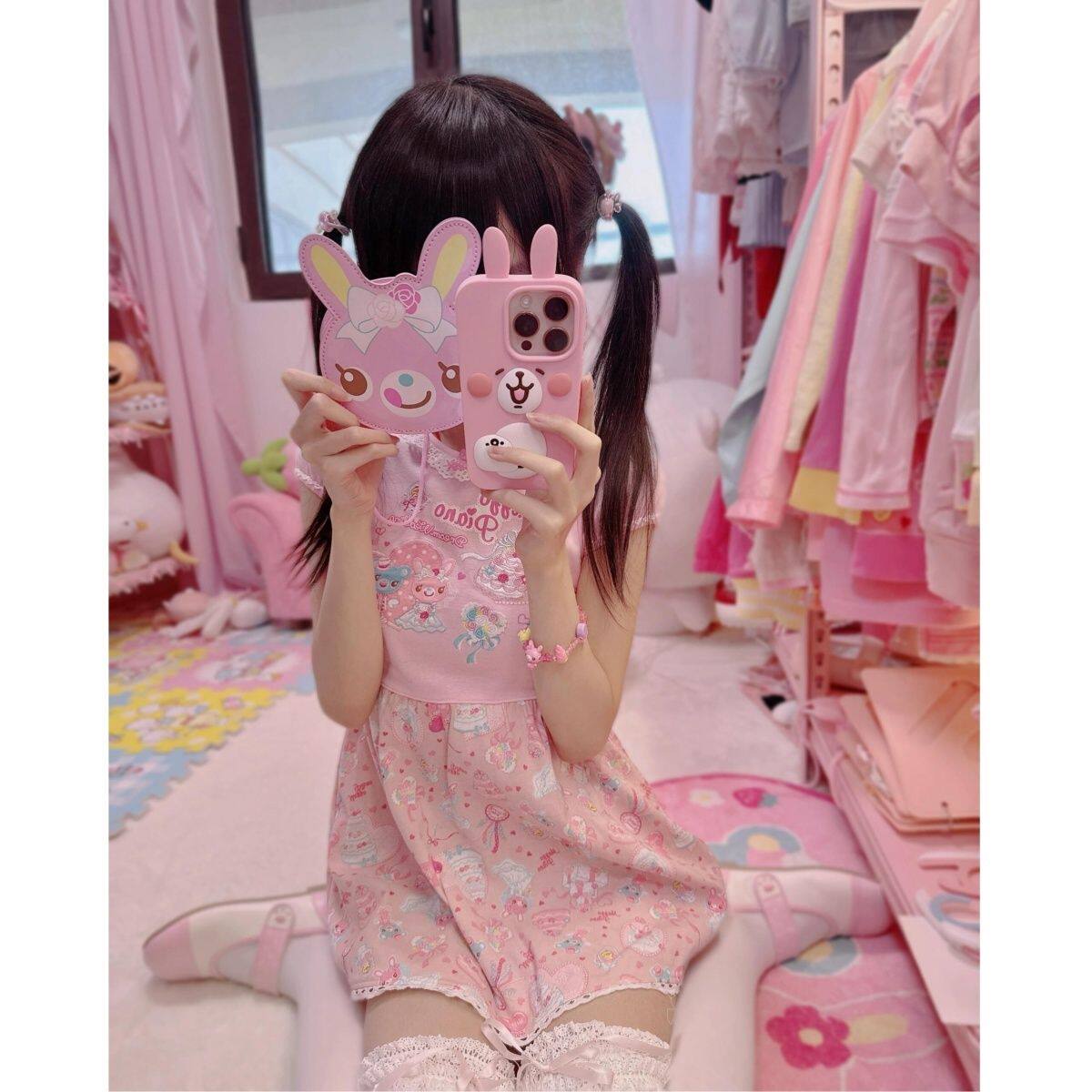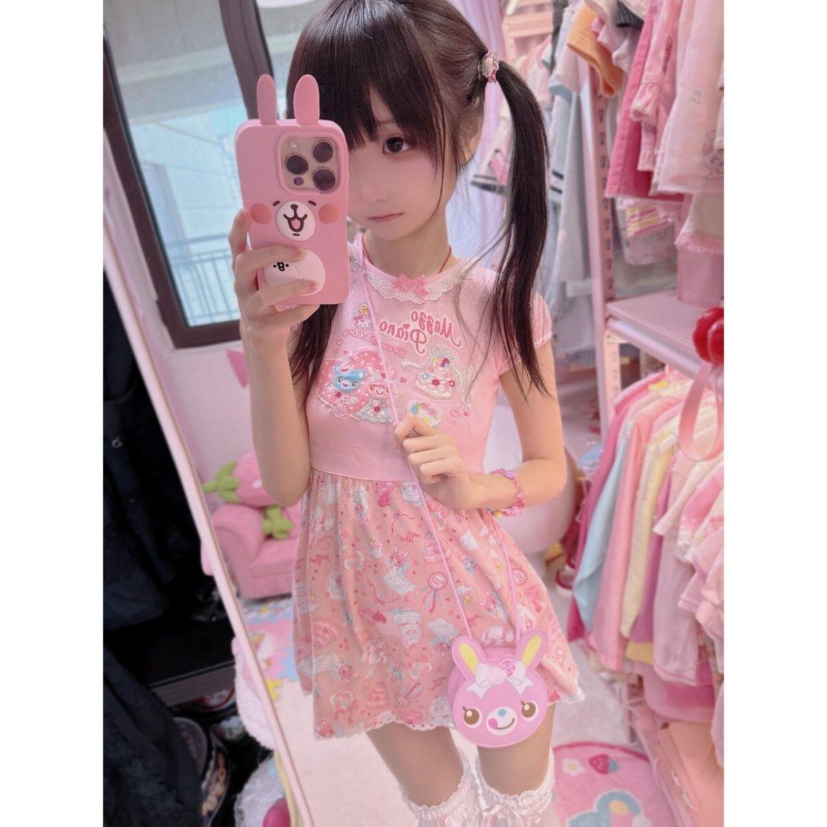 Японское платье для девочек с принтом меццо-пианино, милое и милое секонд-хенд Лолита дзёдзифуку